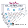 Set de 23 tarjetas con las reglas ortográficas más comunes de uso en Educación Primaria distinguiendo las reglas por ciclo educativo en el que se trabaja: