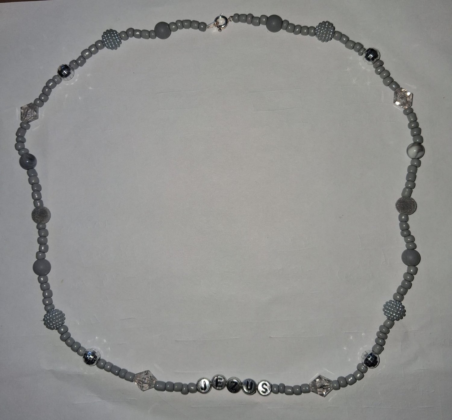 Grijszilveren ketting met tekst Jezus