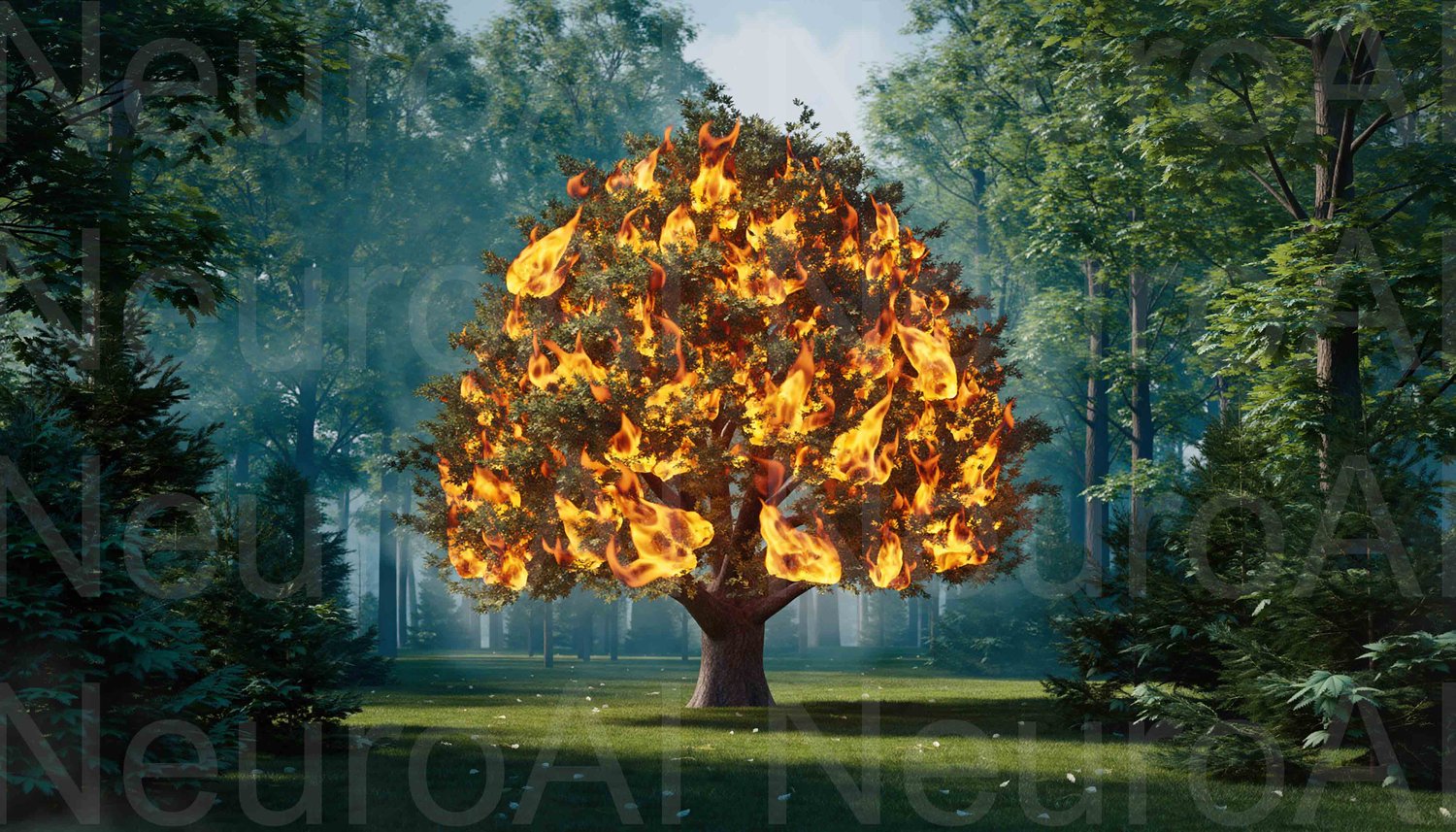 Burning tree symbolizes passion and transformation