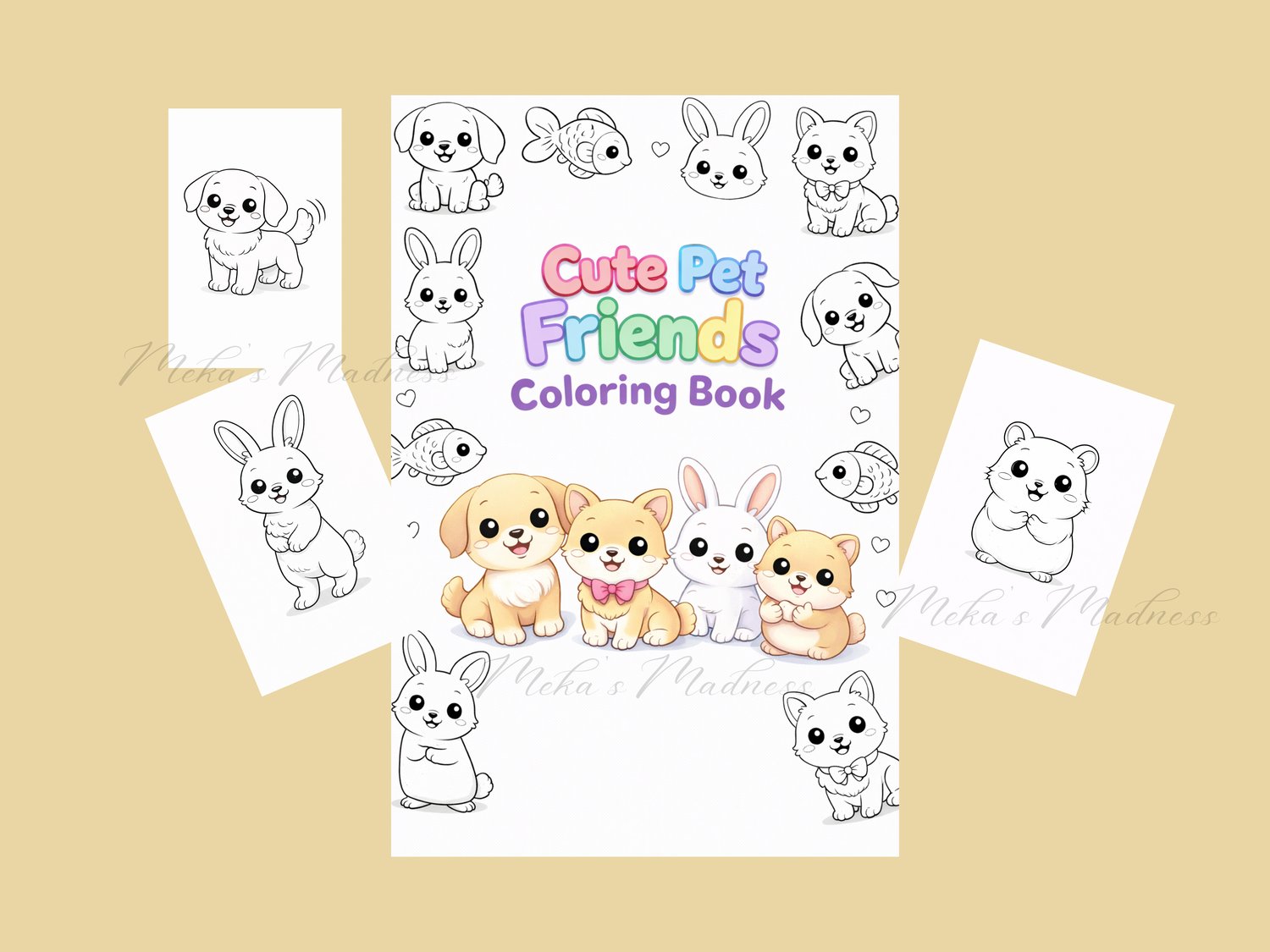 This printable coloring book features cute, friendly pets with bold outlines and simple shapes, making it perfect for young children and beginner colorers.