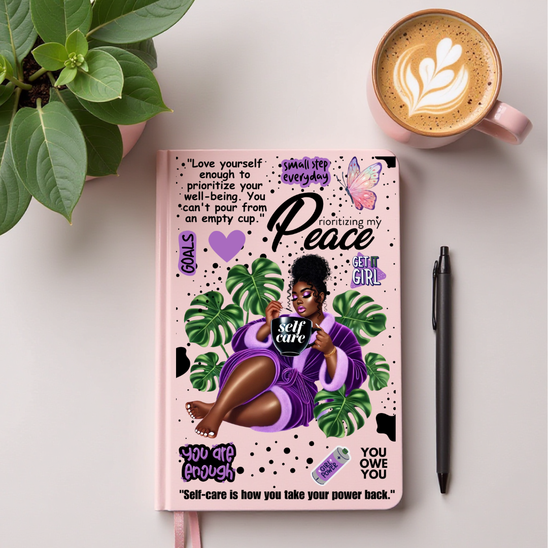 Take a moment for you, sis. This beautifully designed self-care journal was created to help you slow down, breathe, and honor the parts of yourself that deserve love, rest, and attention. With its empowering artwork and daily reminders, this journal encourages you to pour back into your own cup—because your peace matters.