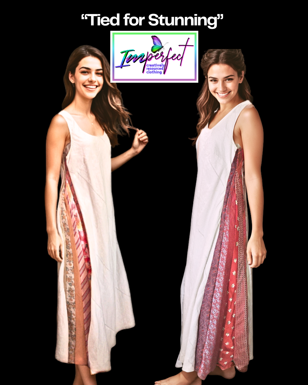This lined linen dress is gorgeous on and off the hanger with vintage neckties cascading down each side. It’s tailored and twirly. Unforgettable and completely fabulous. Honestly? I need to make more. This one is THAT good.