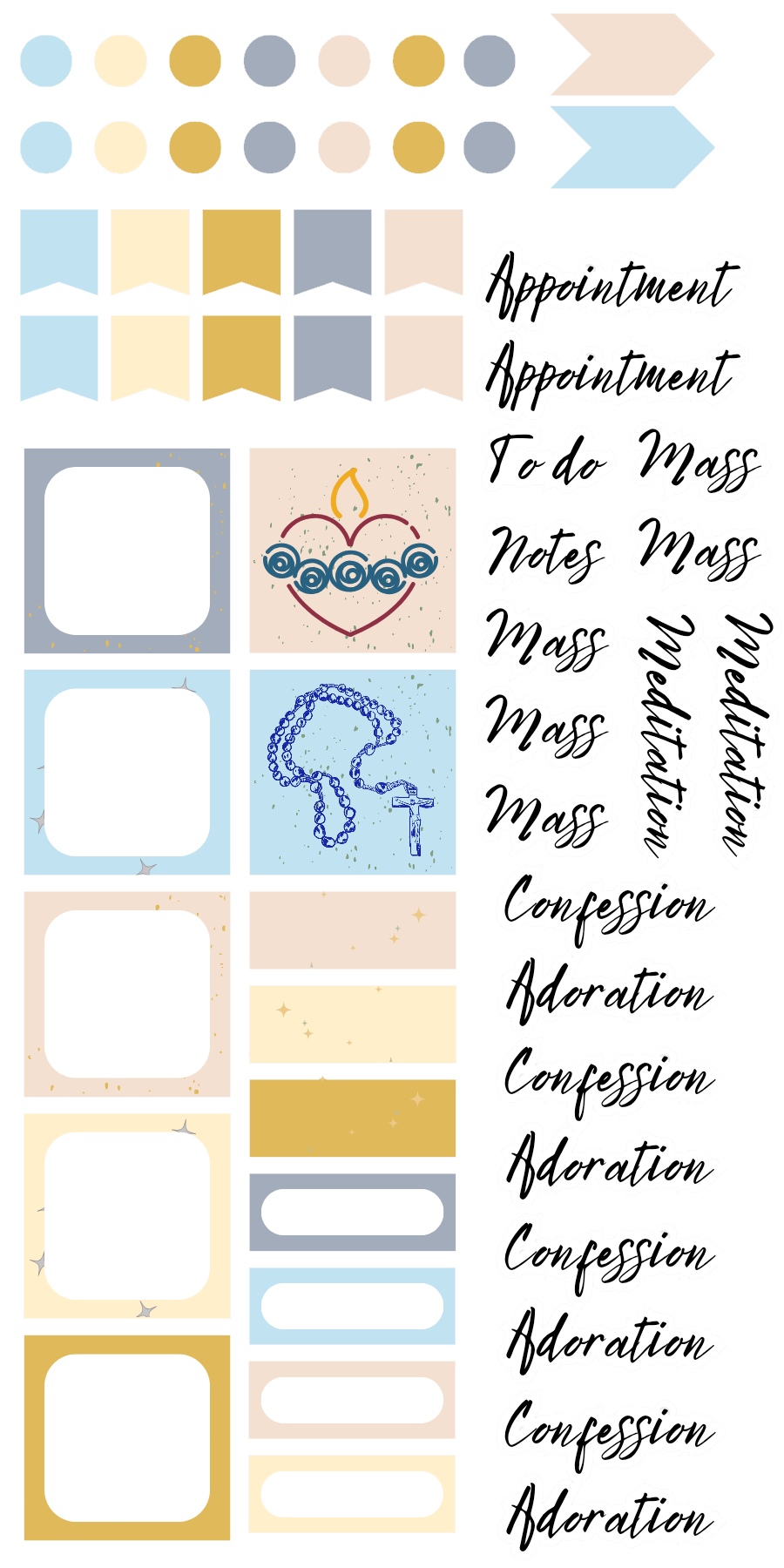 A luminous celebration of devotion and serenity, this kit blends soft pastel blues and radiant golds with delicate sacred imagery. Designed for creators who cherish faith-infused beauty, it’s perfect for journaling, planning, and spiritual reflection.