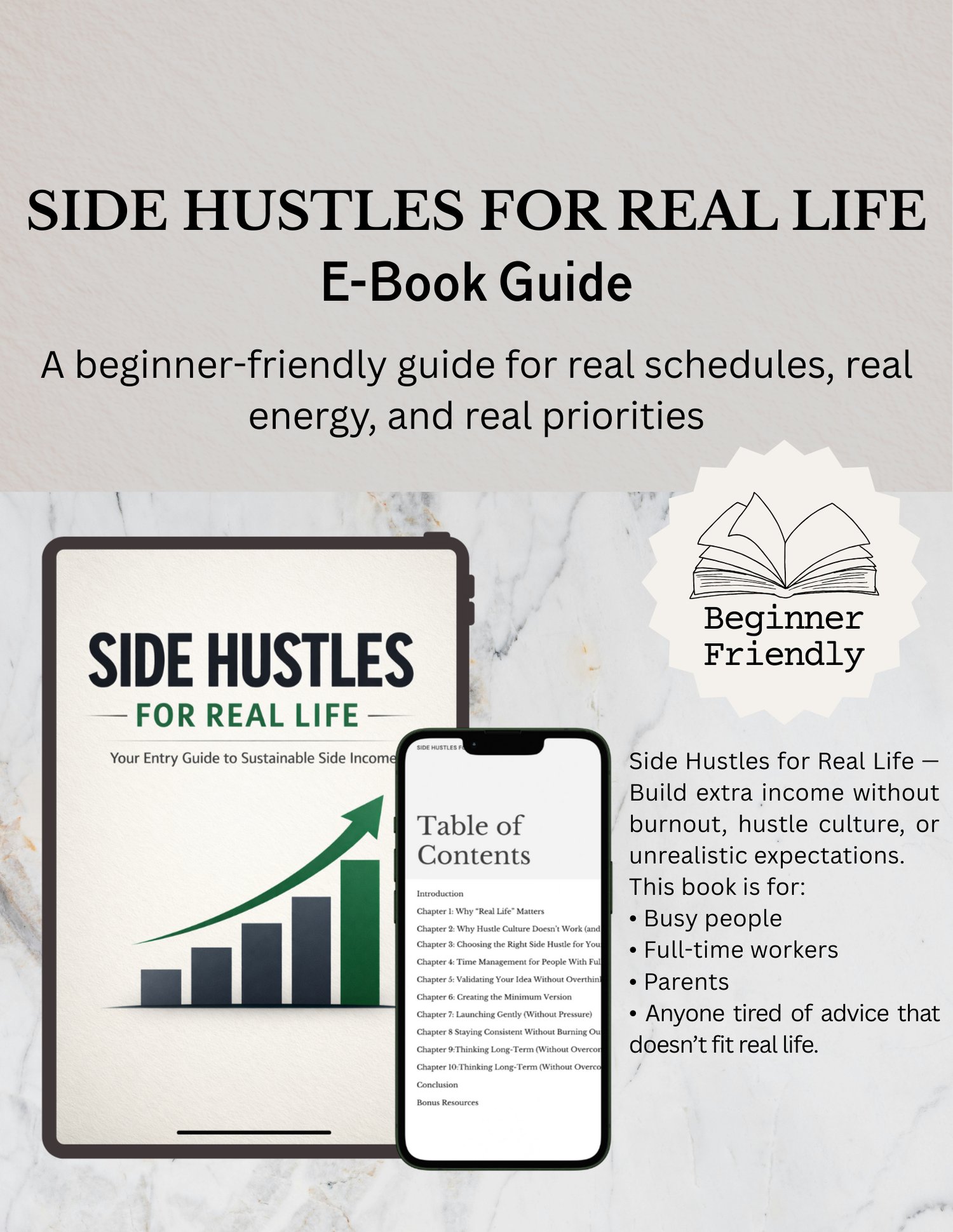 Side Hustles for Real Life is intentionally structured as a clear, accessible starting point.