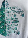 The design incorporates the iconic quote “And into the ocean I go, to lose my mind and find my soul,”