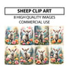 Sheep Clip Art Designs - 8 High-Quality JPGs Bundle, Watercolor Digital Prints, Wall Art, Commercial Use