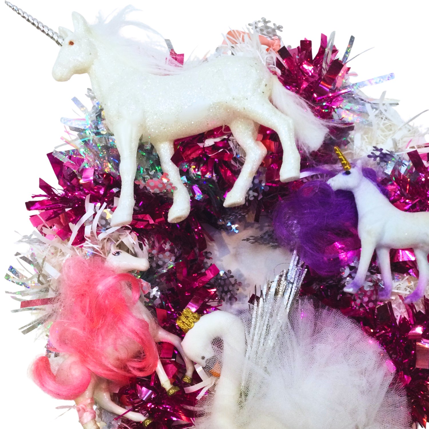 Made from carefully checked, cleaned, and upcycled stray plastic vintage dolls, toys, and other blingalicious beauties, this upbeat wreath is large, measuring 30 cm in diameter. Add one of these different wreath options to your winter decorations today!