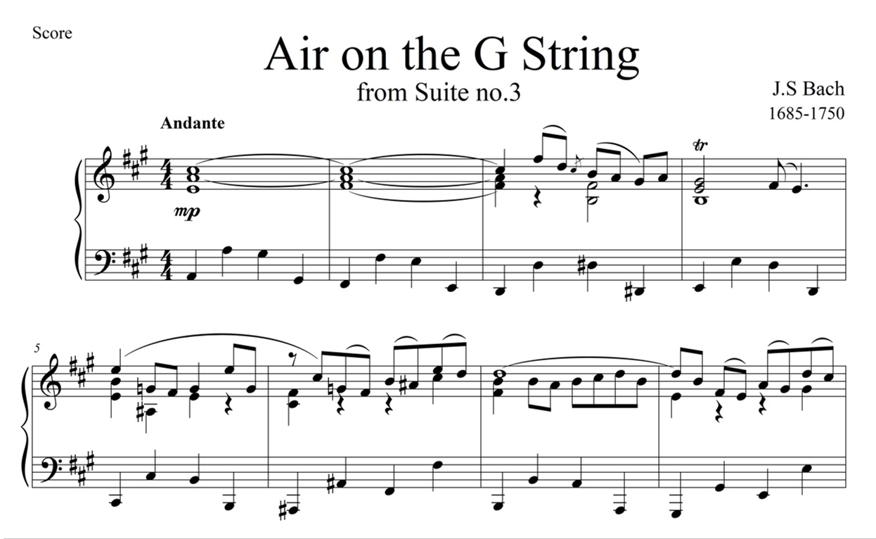Air on the G String - J. S Bach Piano Sheet