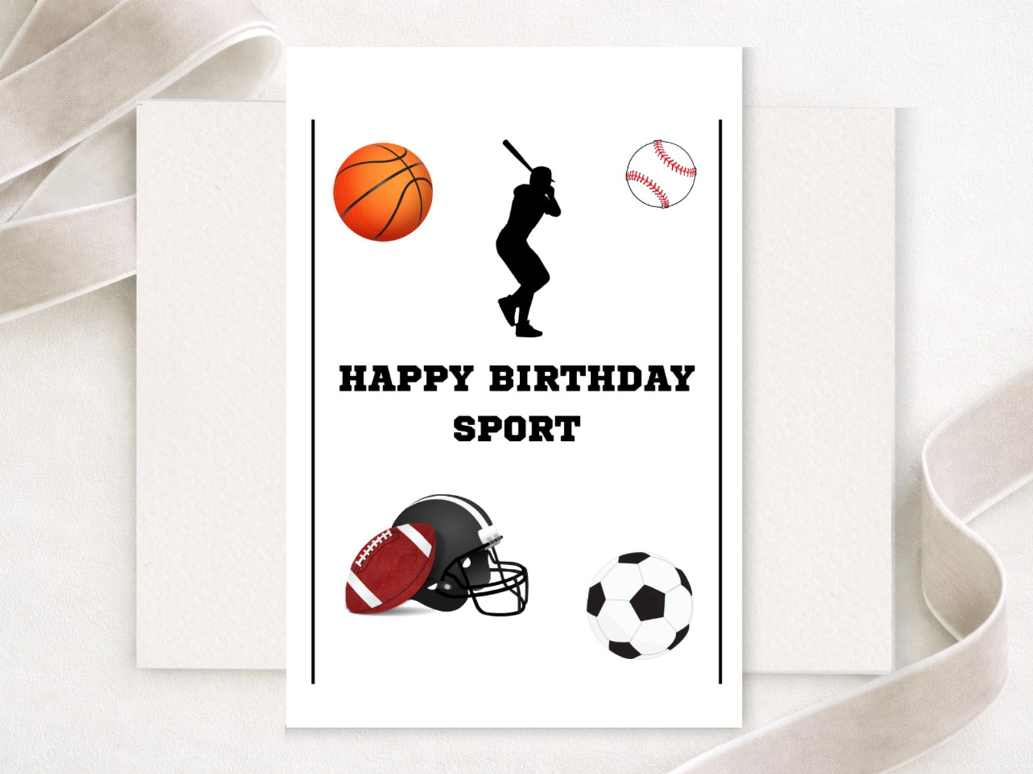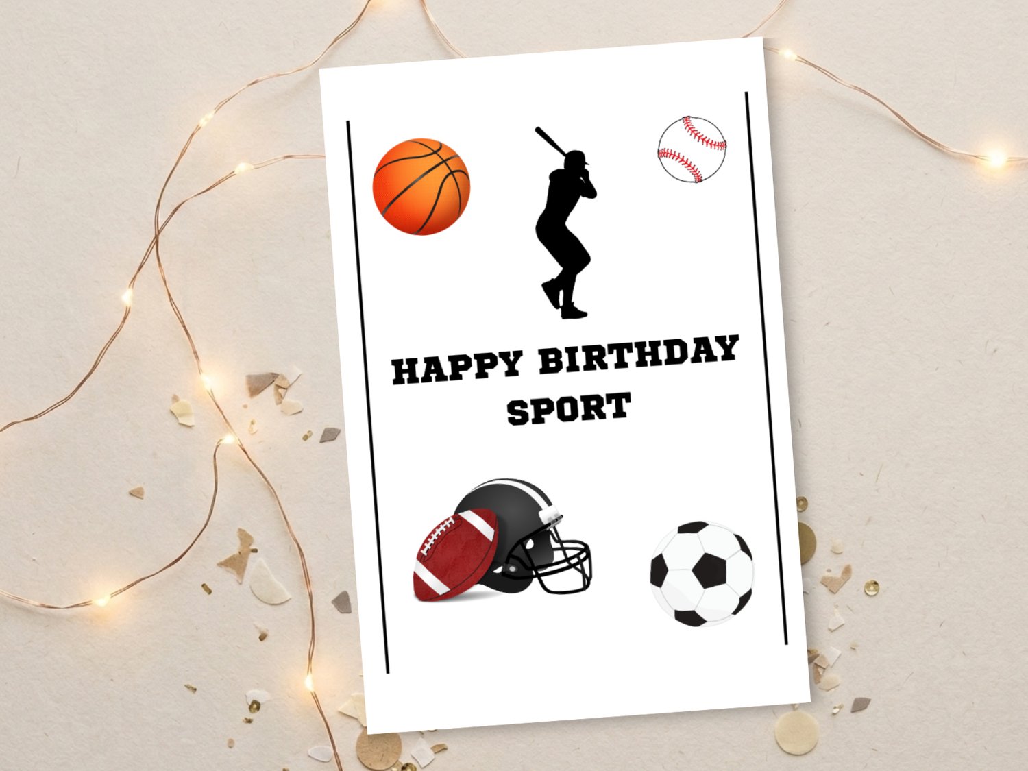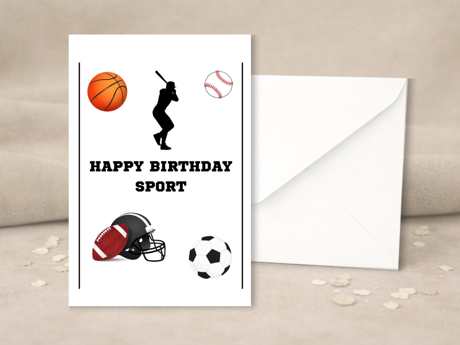 Celebrate a special day with this sporty baseball-themed birthday card! The front features the phrase “Happy Birthday, Sport” in a bold, fun style—perfect for boys who love the game. Clean layout with classic baseball elements makes it a great choice for sports fans of all ages.