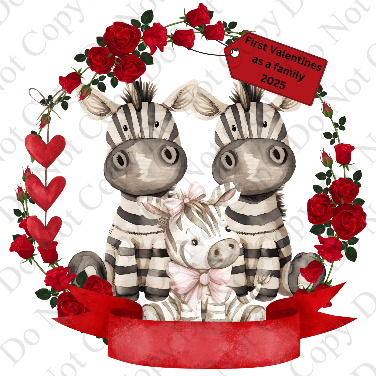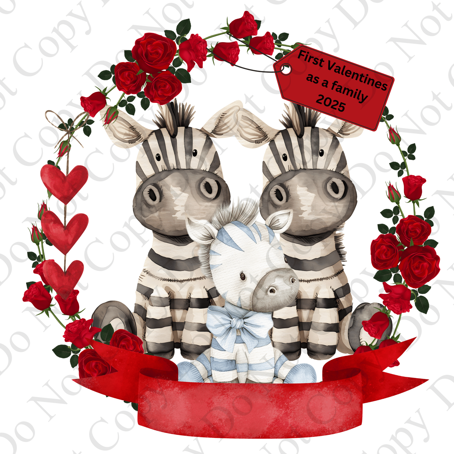FIRST FAMILY VALENTINES ZEBRA - PINK & BLUE - SUBLIMATION - DTF