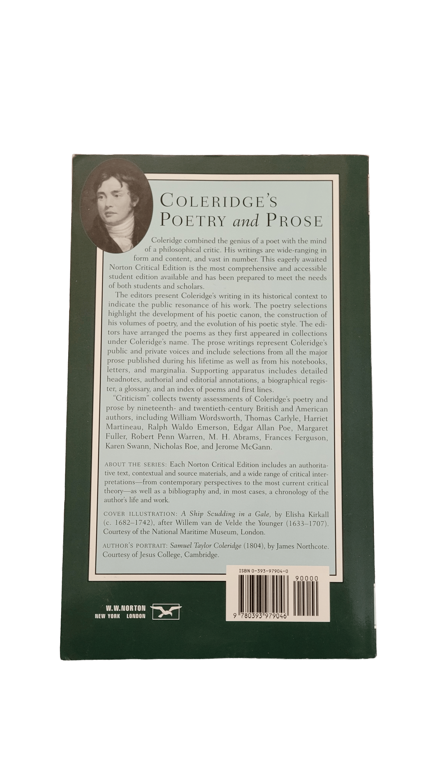 Norton edition of Samuel Taylor Coleridge's selected poetry and prose, with critical essays. The best text for approaching Coleridge for the first time, whether in a classroom setting or for self-study. 2004 edition, 796 pages.