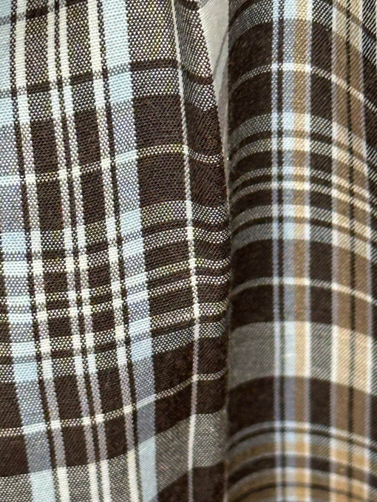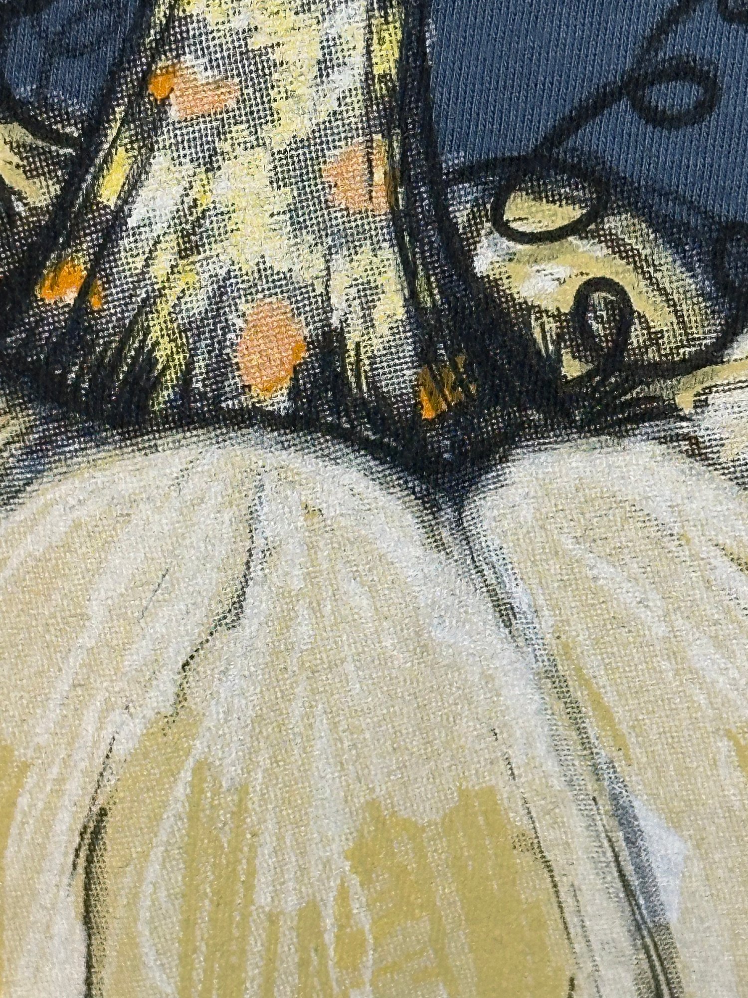 Celebrate fall with cozy, rustic charm in this one-of-a-kind upcycled dress. The top half is crafted from a soft cotton men’s t-shirt in a slate blue tone, featuring a hand-painted white pumpkin with whimsical vine details. The skirt is made from repurposed men’s plaid cotton shirts in earthy shades of brown, cream, and blue, finished with a contrasting band of light woven cotton at the hem for extra texture and flow.