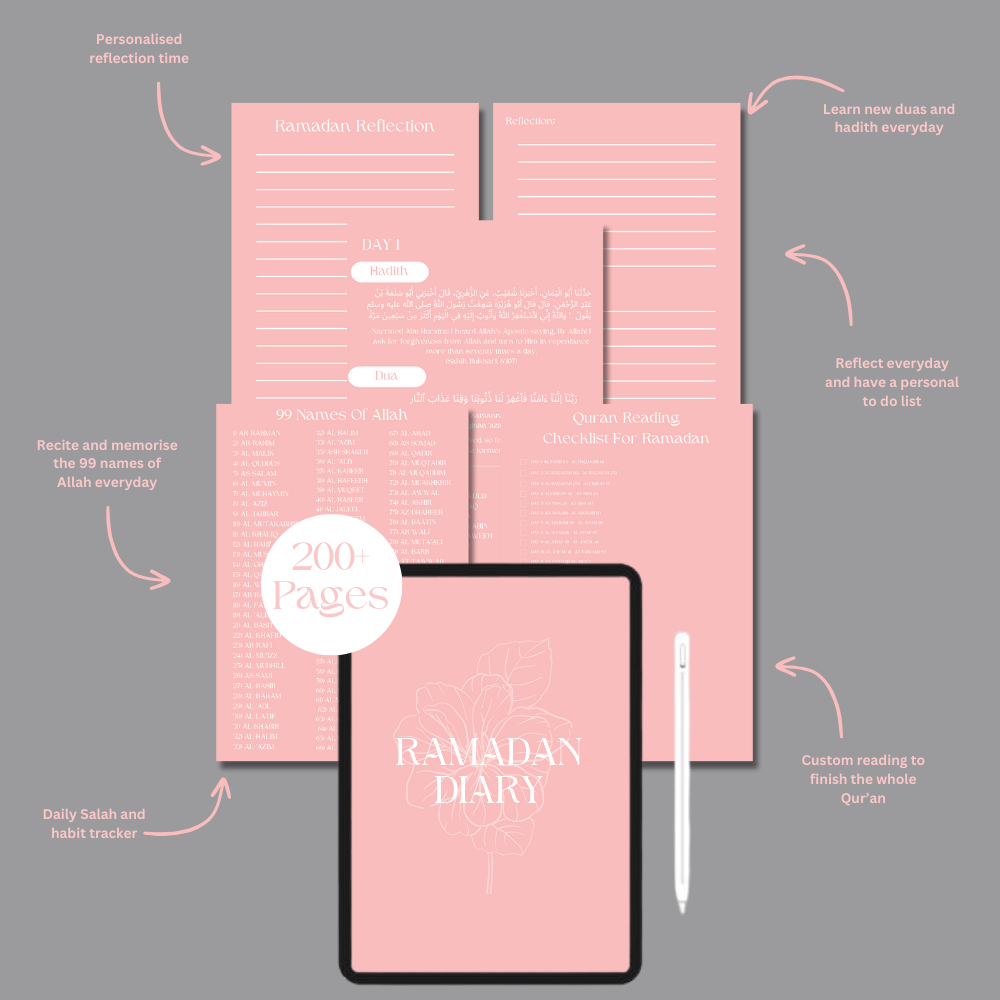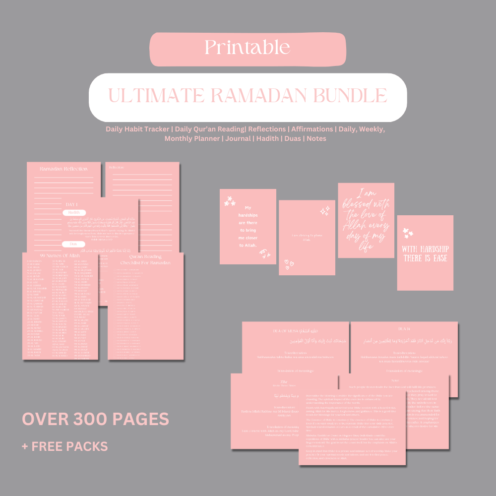 Prioritising Islam in your life is the foundation of every effective routine. Introducing our Ramadan Bundle, expertly designed to appeal to the Muslim lifestyle. By incorporating Islamic traditions into your everyday routine, this calendar will help you stay organised, focused, and profoundly connected to Allah.