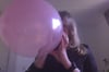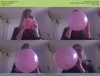 Linda challenges herself to blow up the pink balloon as big as possible until it pops.