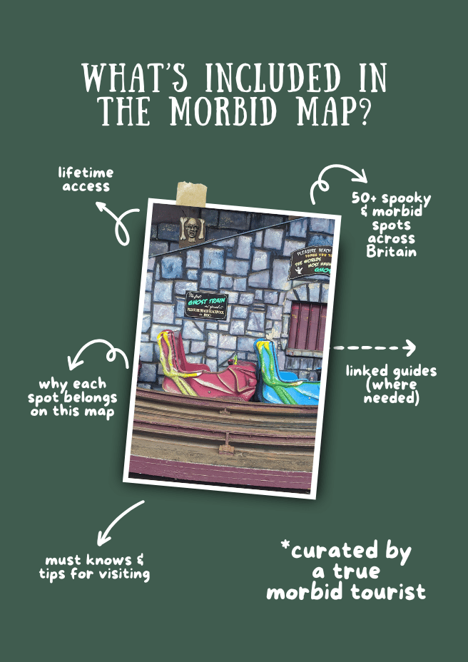 A growing map of haunted, weird & wonderfully dark places around the UK. The Morbid Map brings together my personally recommended spooky spots across the UK - from iconic ghost locations to hidden folklore finds you’d never stumble across by accident.