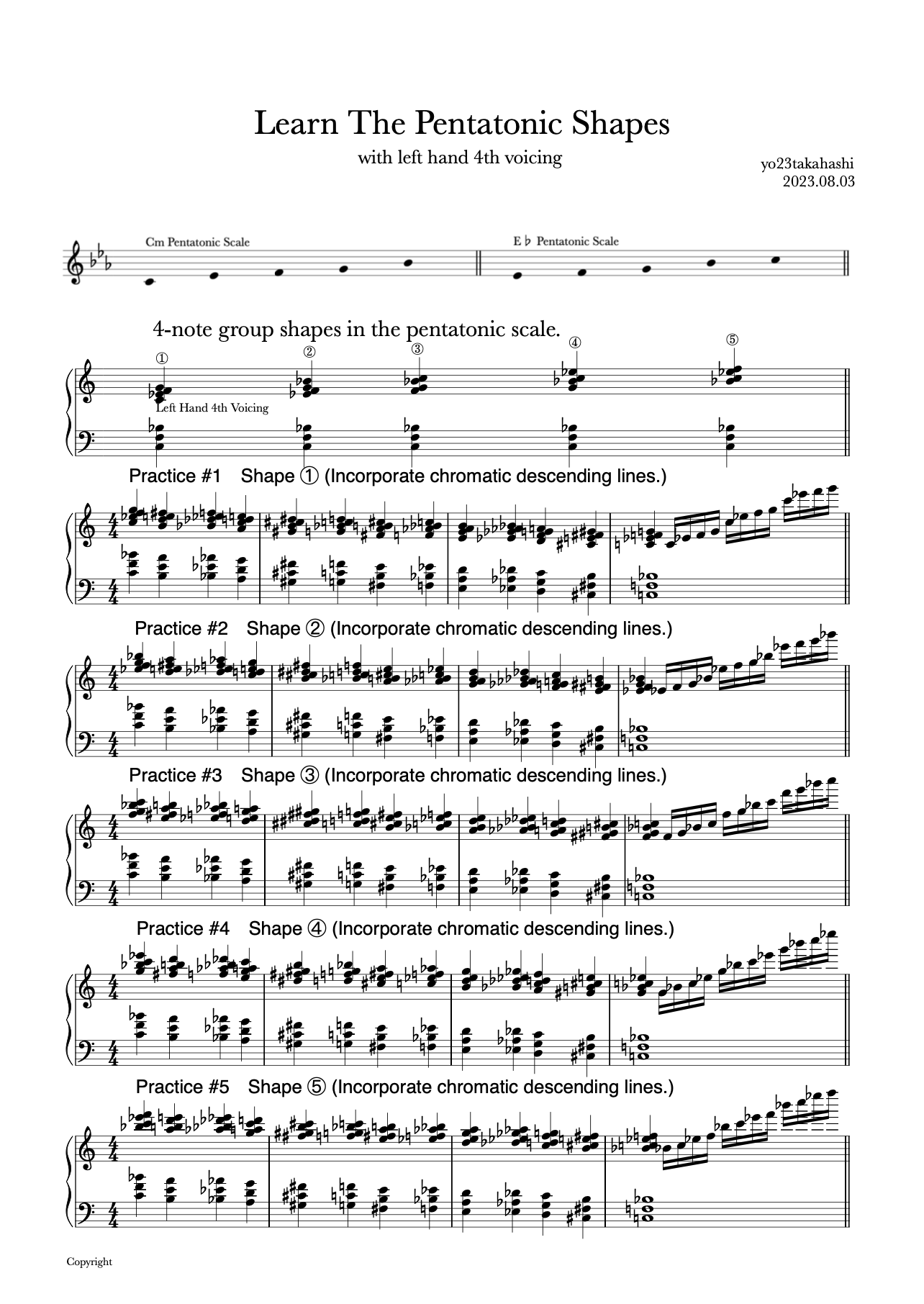 Learn the pentatonic shapes with left hand 4th voicing