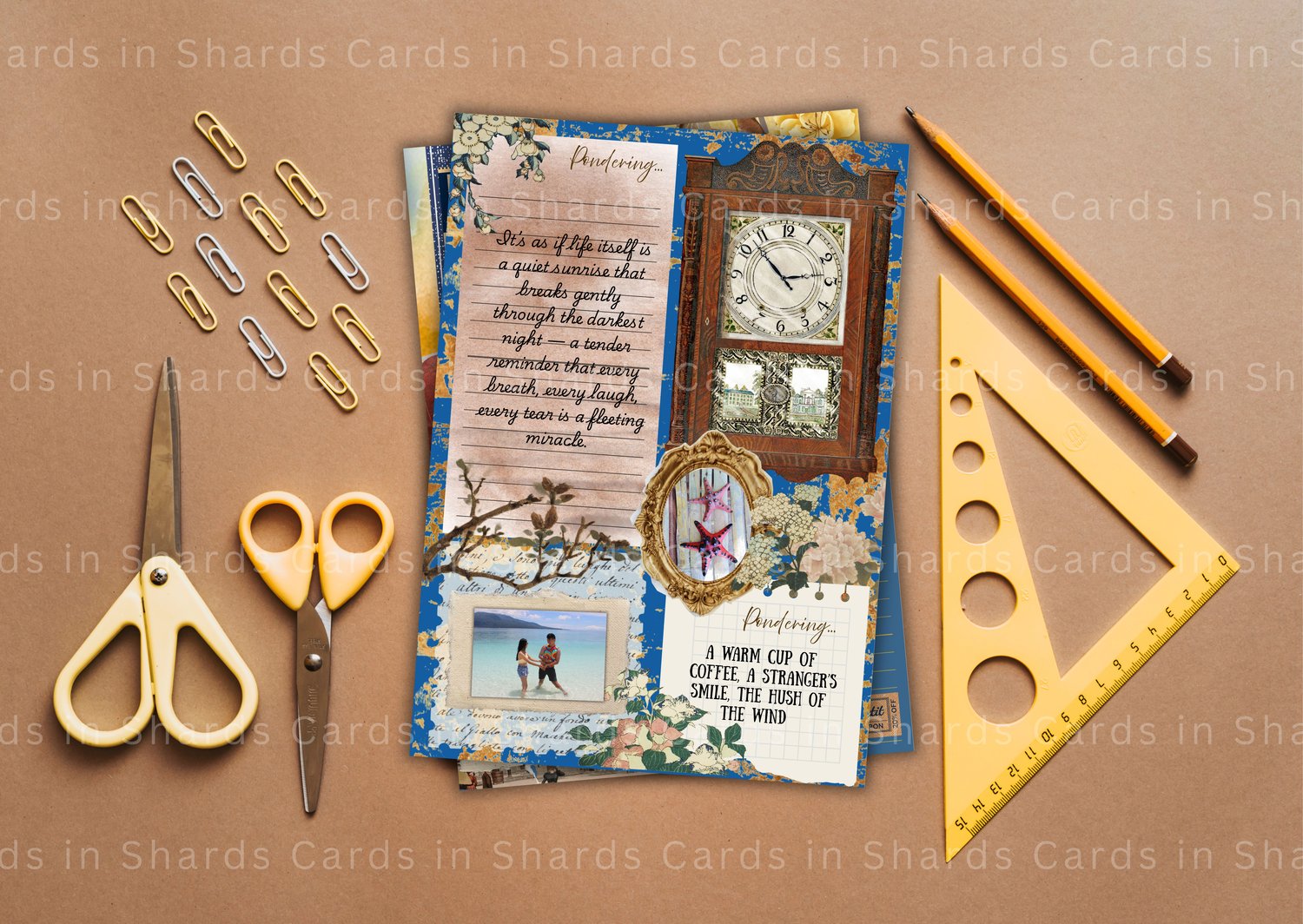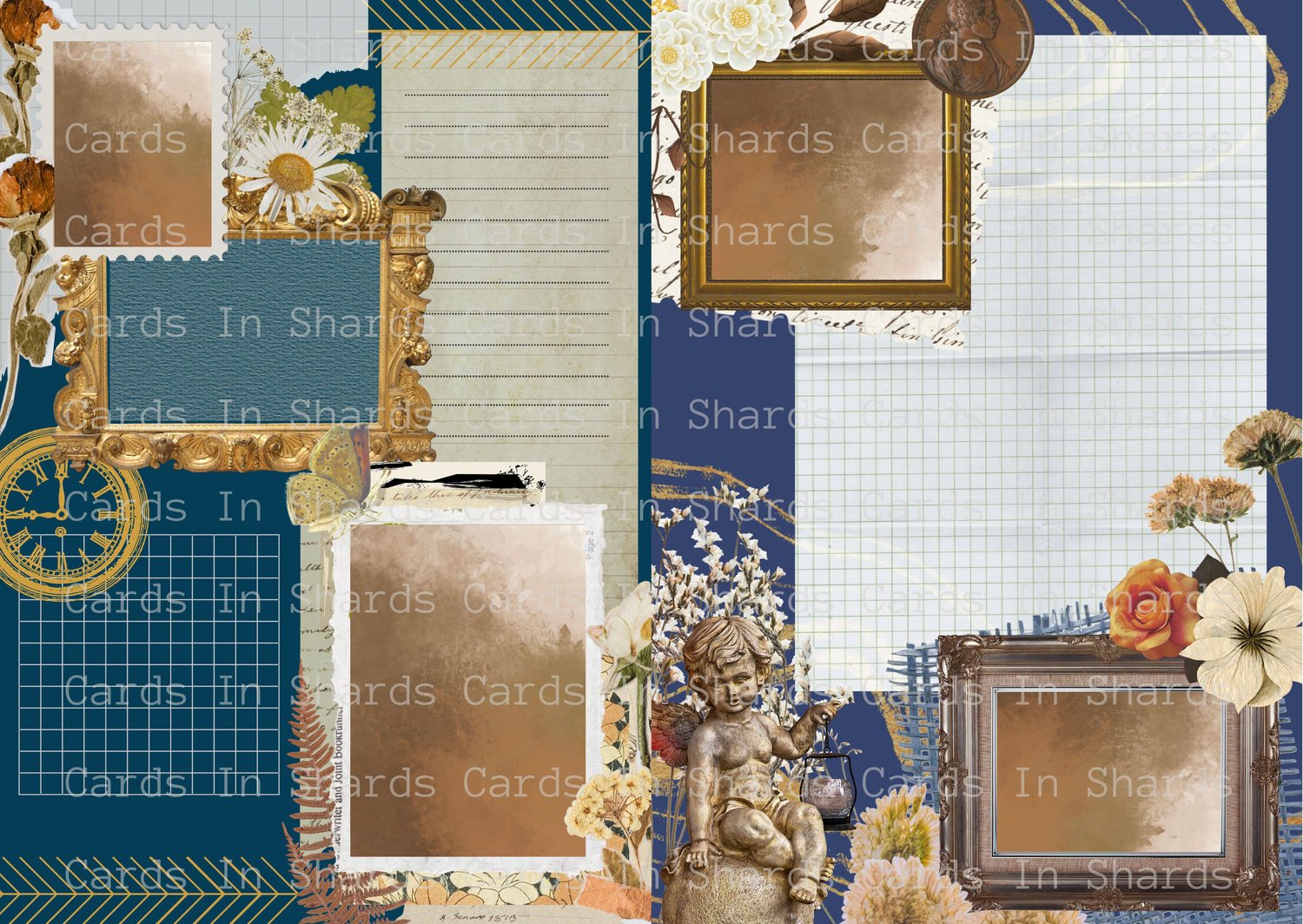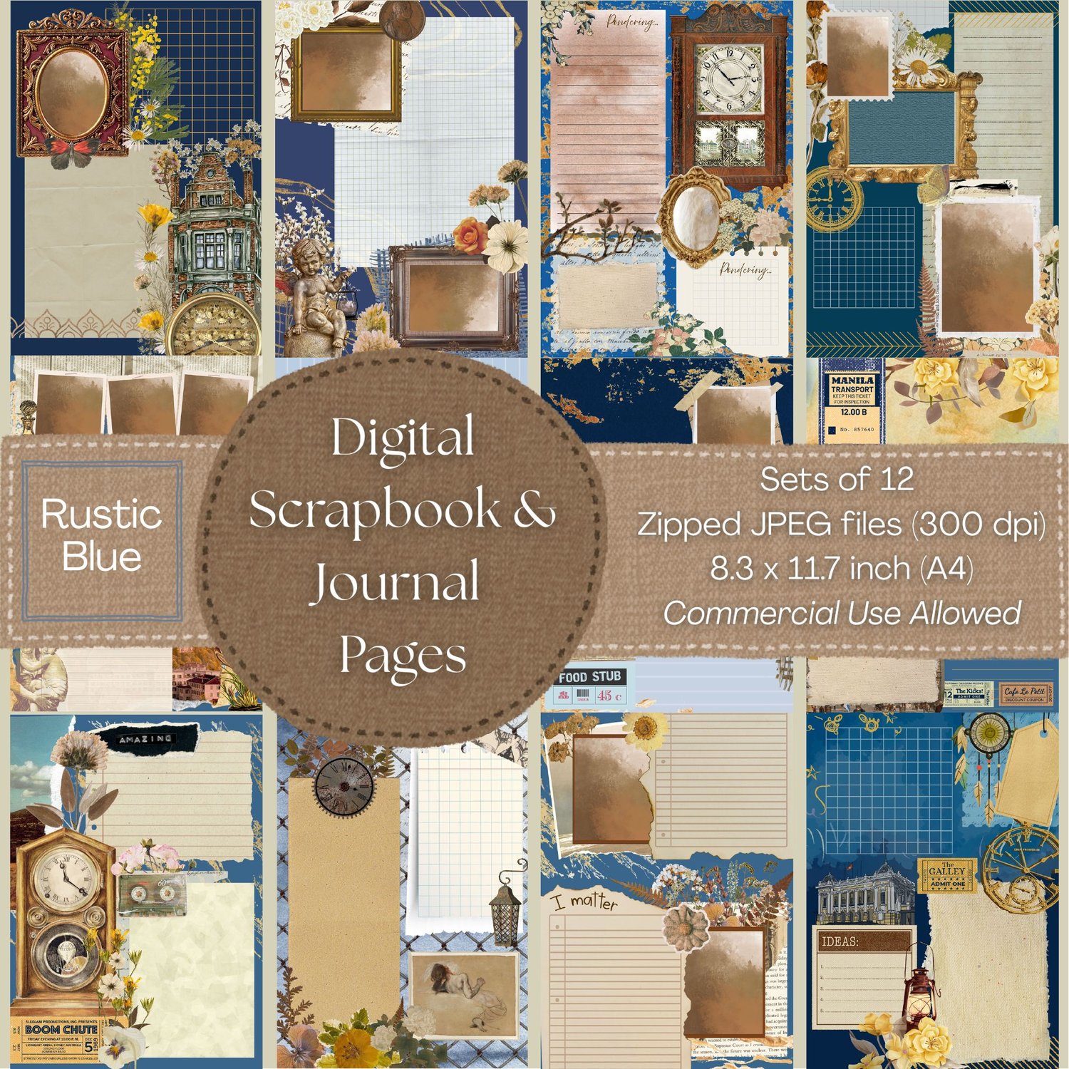 Add a touch of vintage charm to your journals with this "Rustic Blue" digital scrapbook set, featuring deep navy tones paired with warm browns, muted creams, and golden yellows. Each page is richly detailed with antique frames, florals, aged textures, vintage clocks, and nostalgic ephemera — perfect for creating a timeless and cozy journal spread. The blend of rustic elegance and old-world whimsy makes this collection ideal for vintage lovers, memory keepers, and creative storytellers.