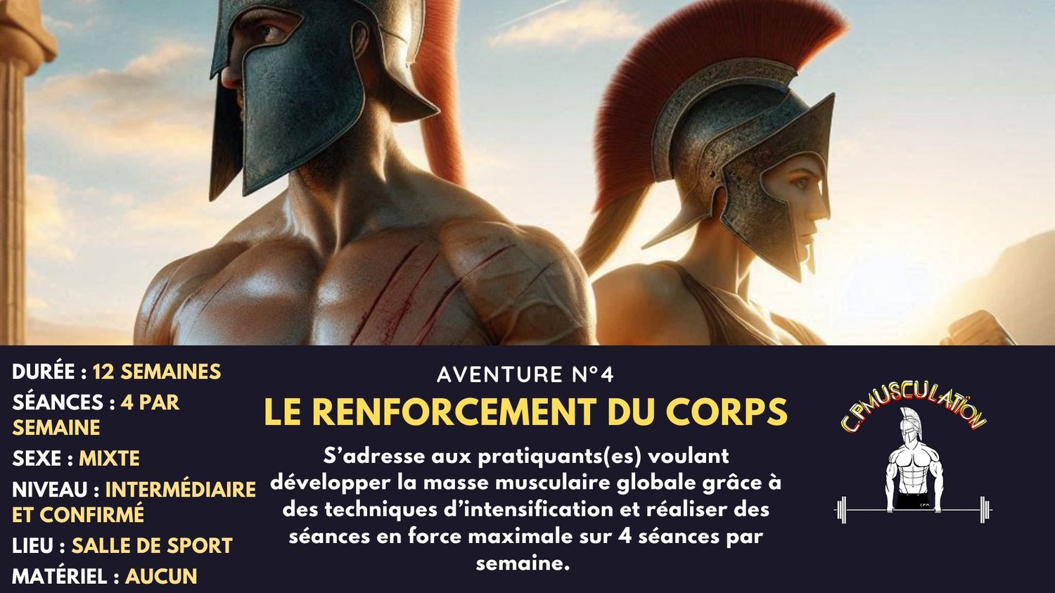 S’adresse aux pratiquants(es) voulant développer la masse musculaire globale grâce à des techniques d’intensification et réaliser des séances en force maximale sur 4 séances par semaine.