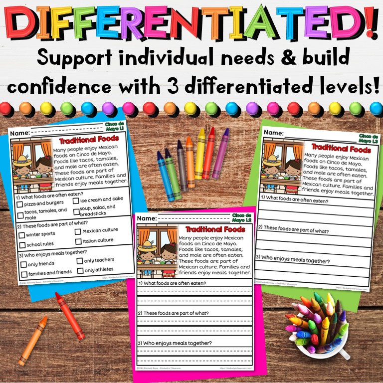 ✏️The differentiated reading comprehension worksheets come in 3 levels:
