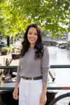 Join Front and Back at the shoulders with 3-Needle BO and work folded Neckband in 1x1 half-twisted rib. Finally pick up sts around the armholes and work seamless set-in Sleeves from the top down in stockinette with twisted stitch detail – first the Sleeve Cap flat with German short rows, then the rest in the round, finishing with a Cuff in 1x1 half-twisted rib.
