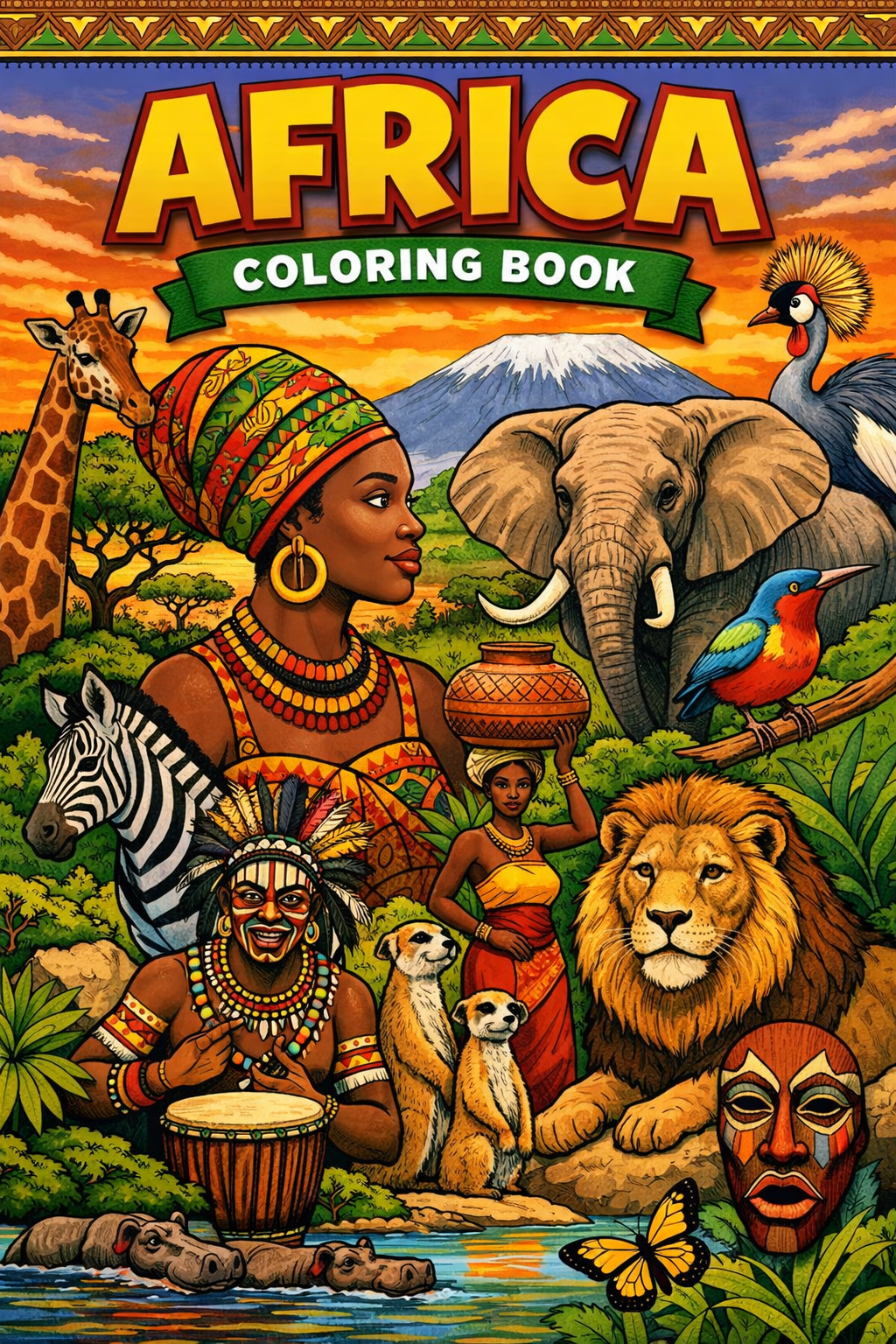 Africa, 120 designs, coloring ebook, digital printable product, instantly download