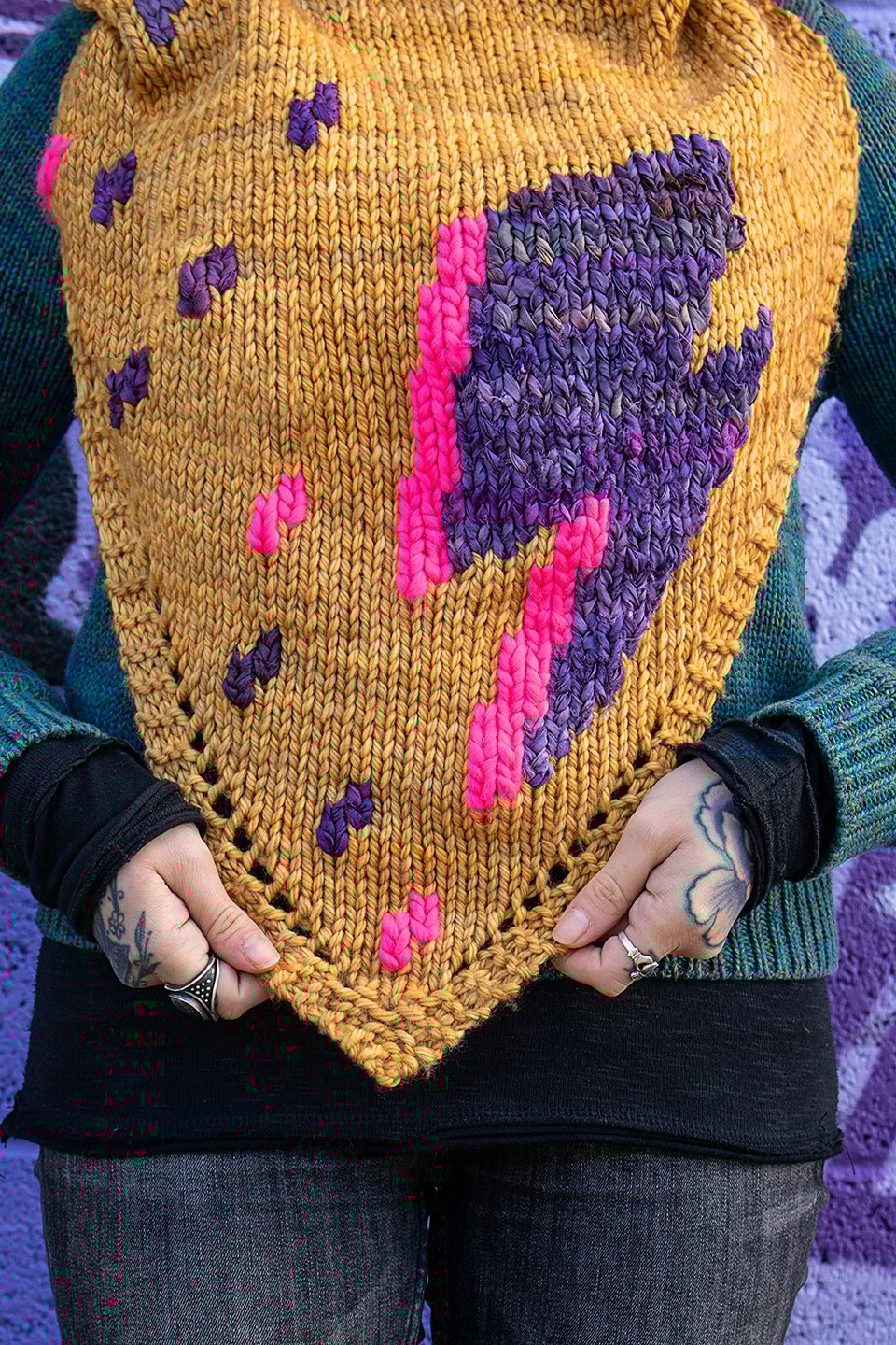 Rebel Rebel, designed in collaboration with Wonderland Yarns, was inspired by none other than the man, the myth, the legend: David Bowie! One of the most influential musicians of all time, he showed us that there’s more than enough room in the world for all the outcasts, weirdos, misfits, and people who don’t fit in. We belong exactly where we are and we deserve to be exactly who we are.