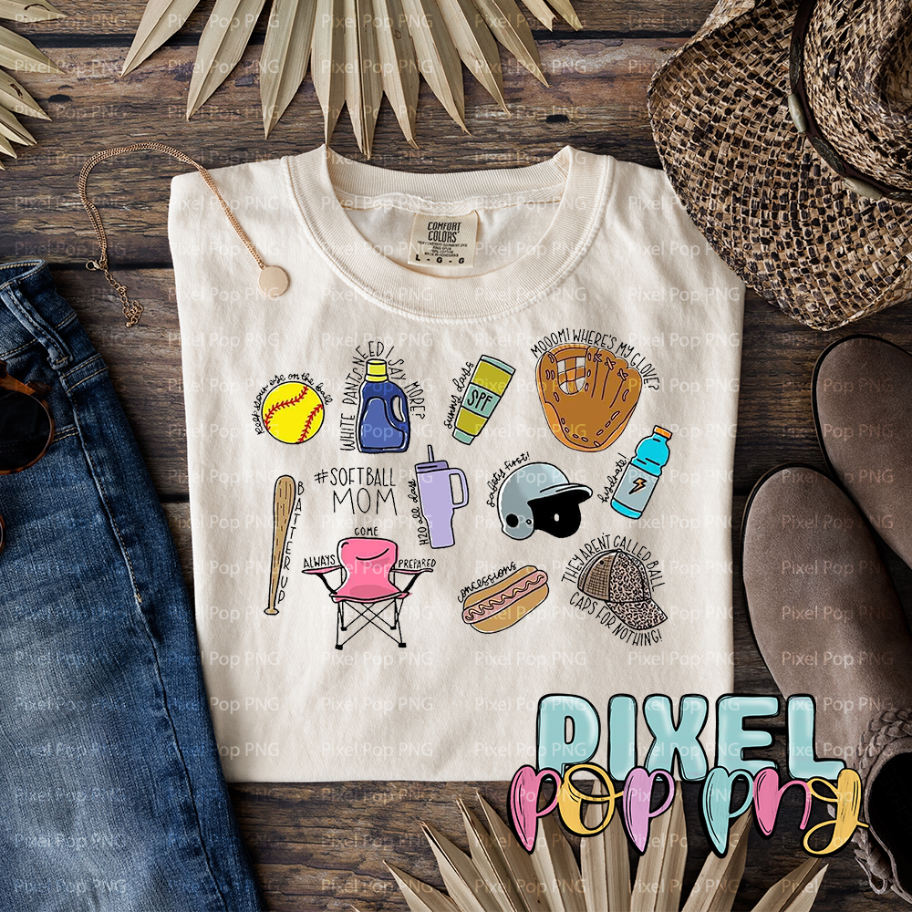 Softball Mom - Softball Elements Sublimation - DTF Design