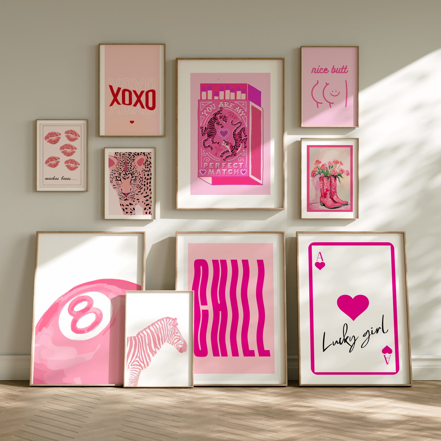 This 13-print digital wall art bundle is curated for girly rooms, Y2K lovers, and dopamine decor fans. Think bold pinks, playful typography, chic animal prints, flirty illustrations, and statement pieces that instantly elevate your walls.