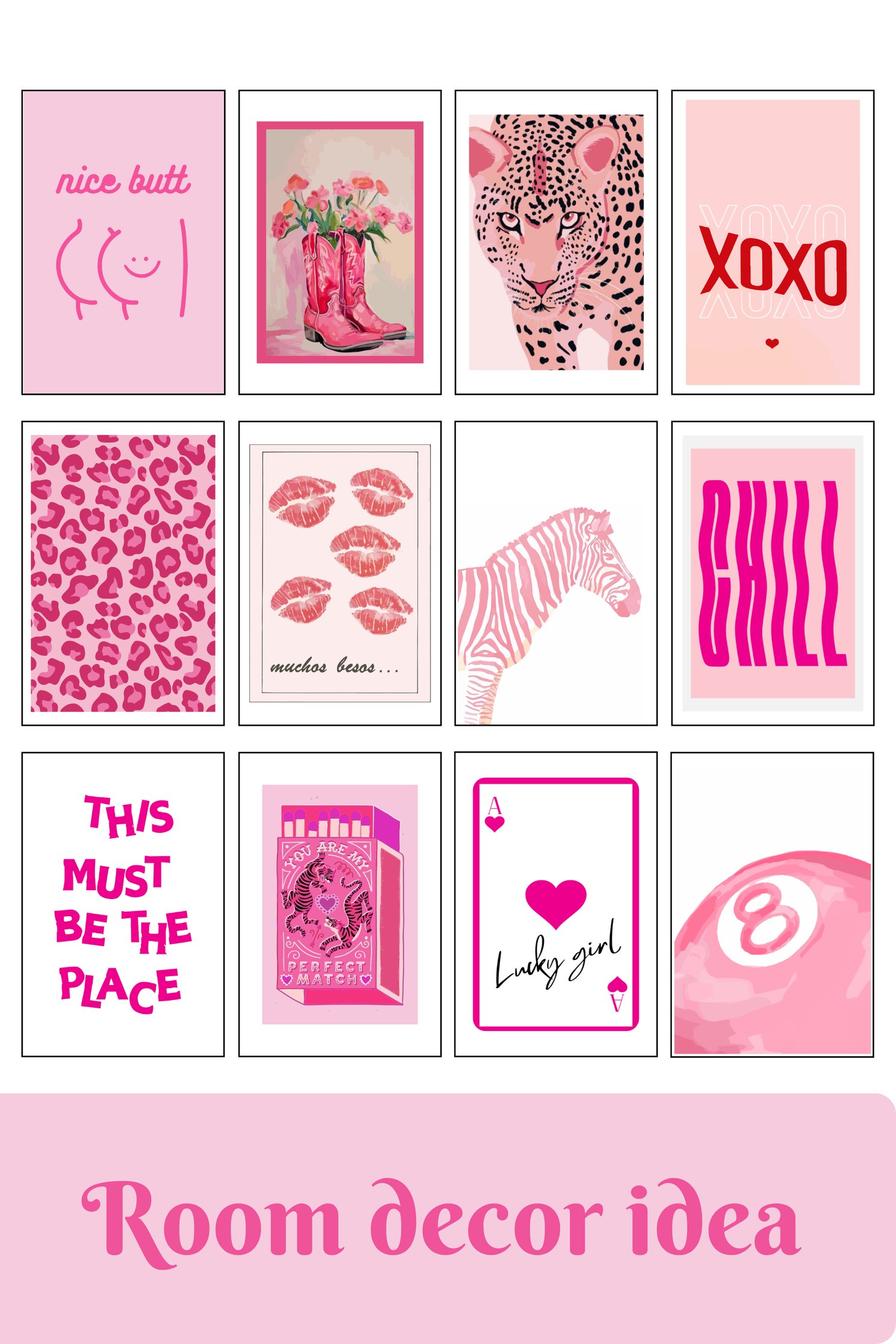 Pink Aesthetic Wall Art Bundle – 13 Printable Posters | Coquette, Y2K, Girly Room Decor, Leopard, Typography, Pop Art Prints