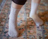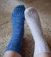 Worked top down with a ribbed cuff and a simple basketweave texture, french heel and grafted toes.