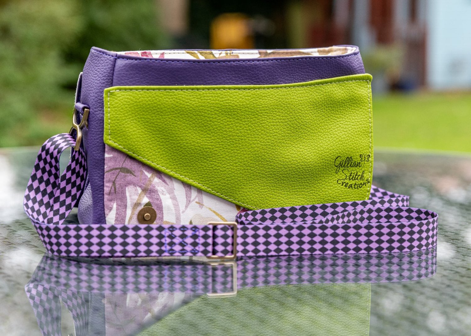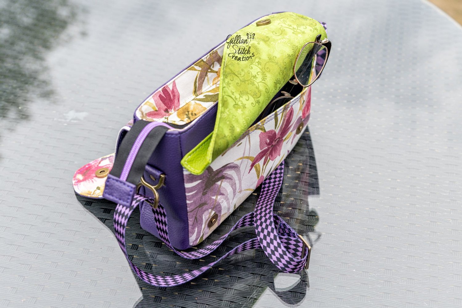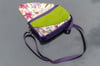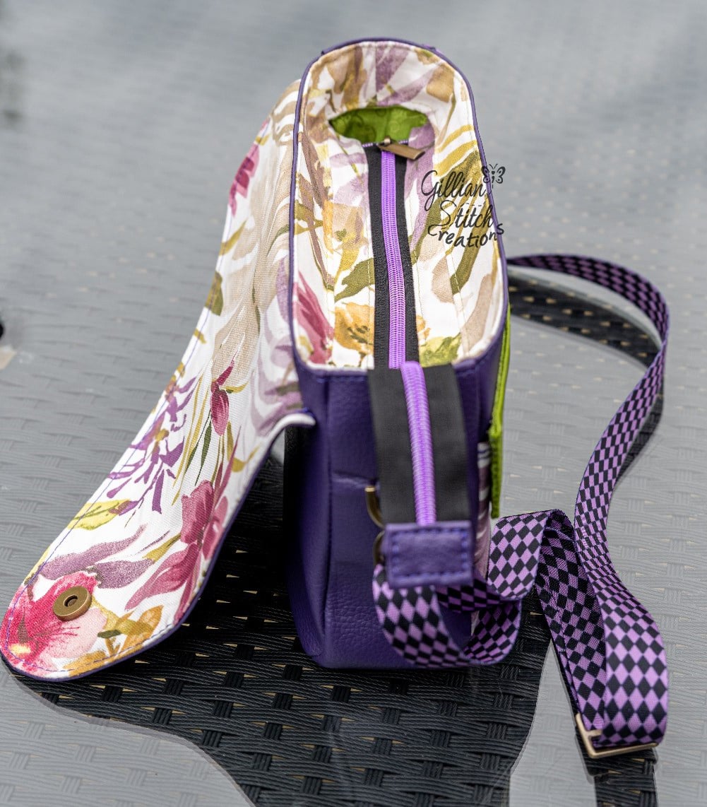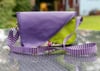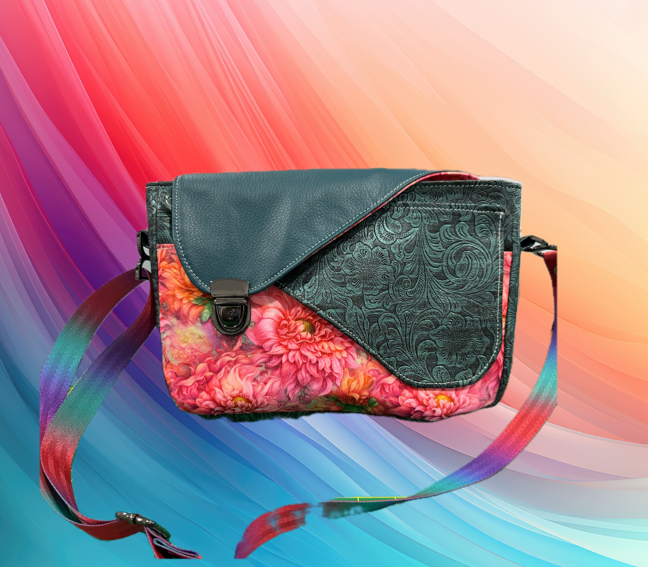 Fun, new crossbody with two versions now available. The first version is with an Asymmetrical front. The bottom flap covers a slip pocket that is perfect for your phone. The top flap hides the recessed zipper, and a nice open inside with a zipper pocket. The latch on the top pocket keeps the whole thing neatly closed.