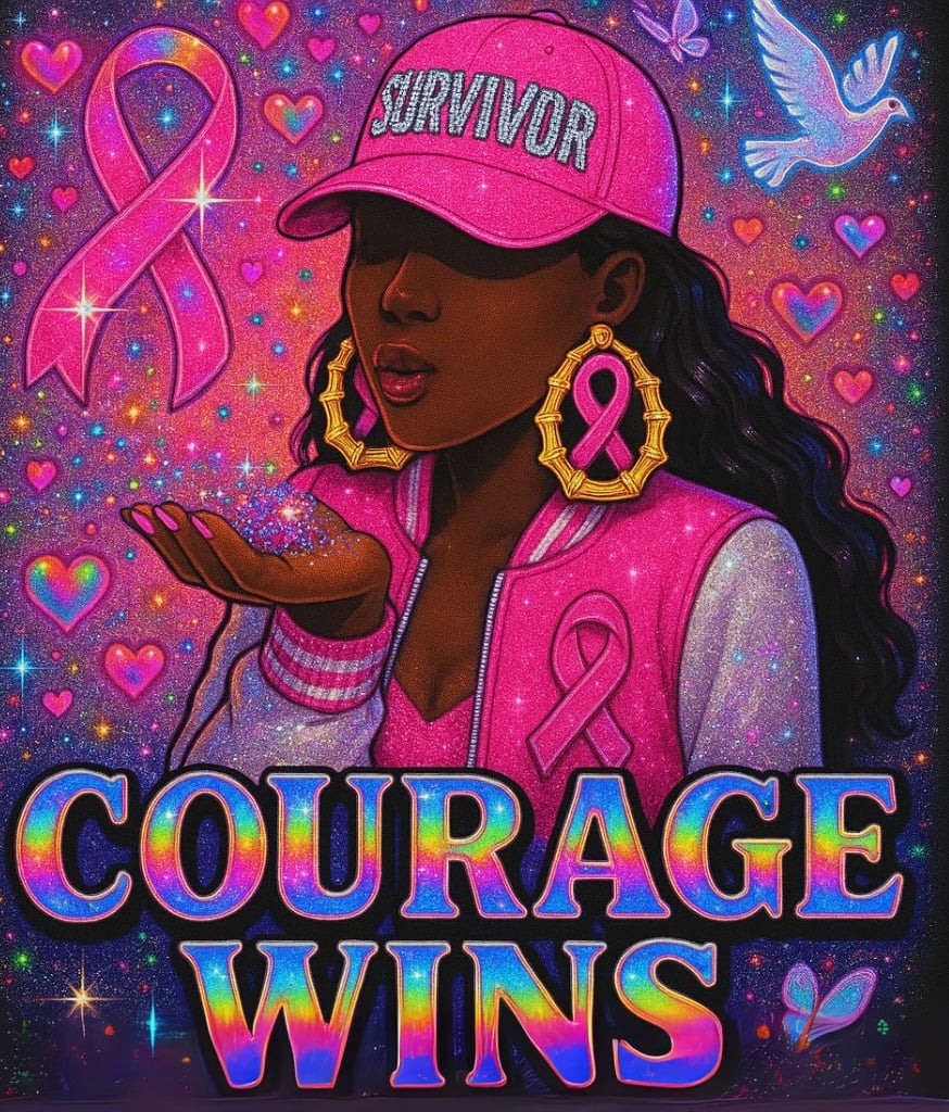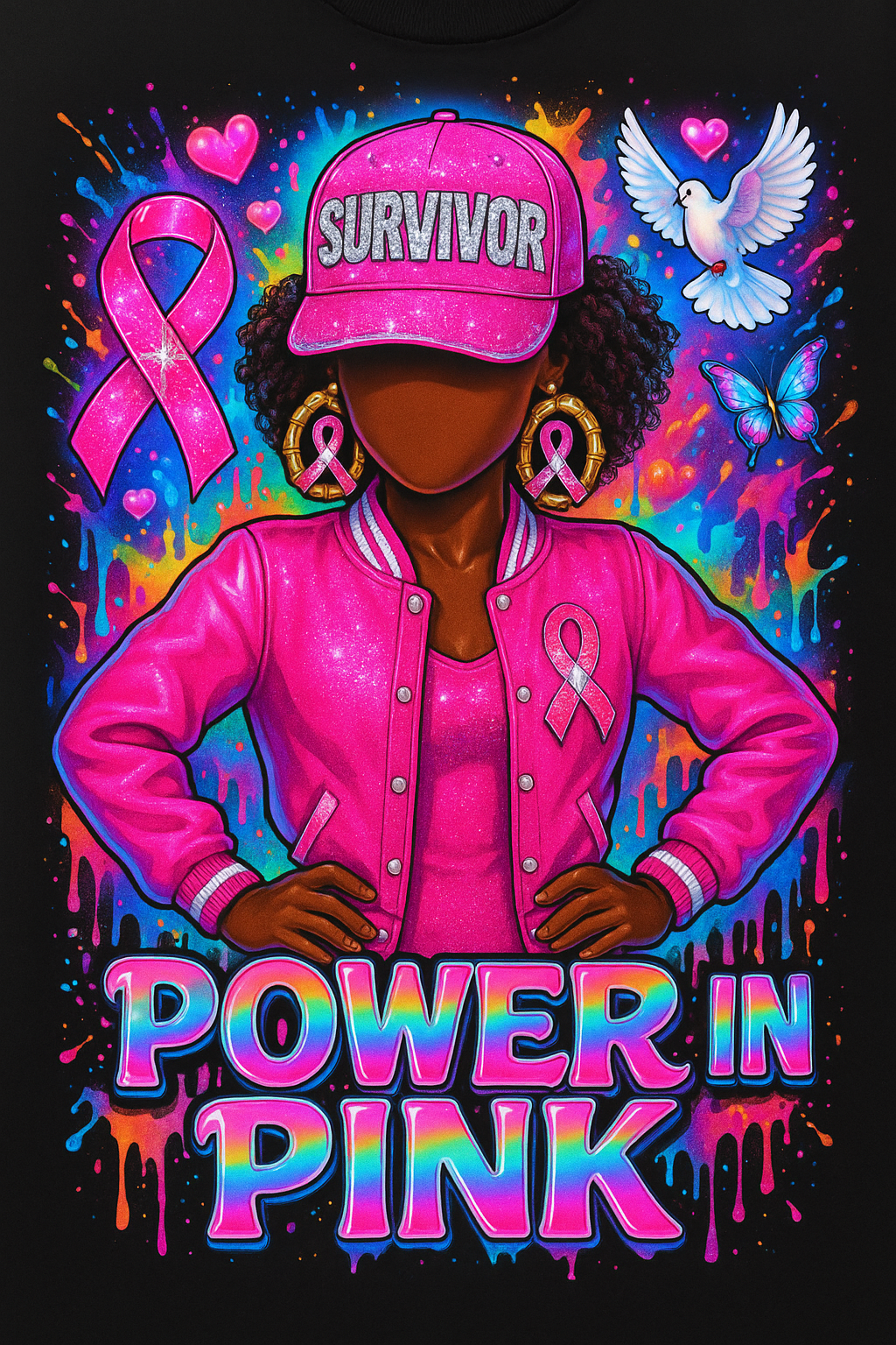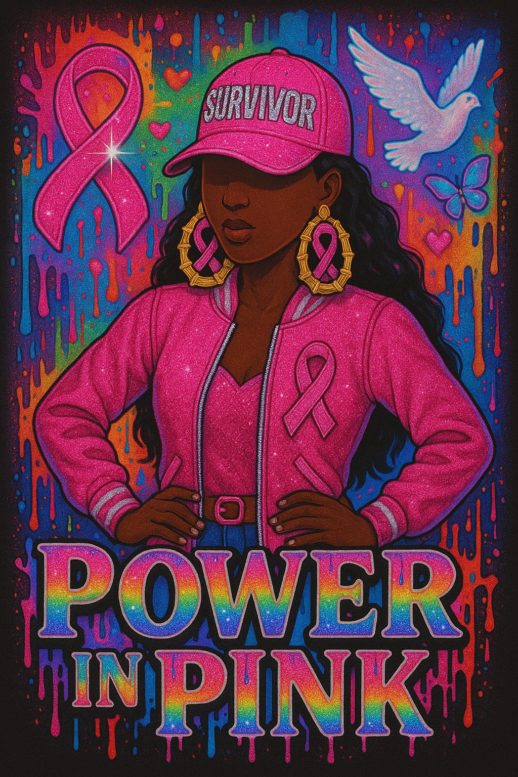 • 💖 Power in Pink (Version 2) – Afrocentric pride with bold curls, wings, and glowing symbols of hope.