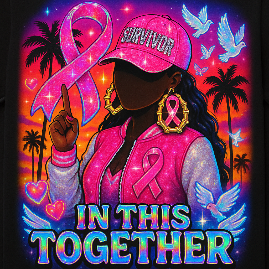 Celebrate strength, unity, and survivorship with this exclusive Breast Cancer Awareness T-Shirt Design Bundle. Featuring four bold, high-resolution designs, each piece showcases an empowered Black woman in vibrant pink apparel with rhinestone-style details, gold bamboo ribbon earrings, and the iconic breast cancer ribbon symbol.