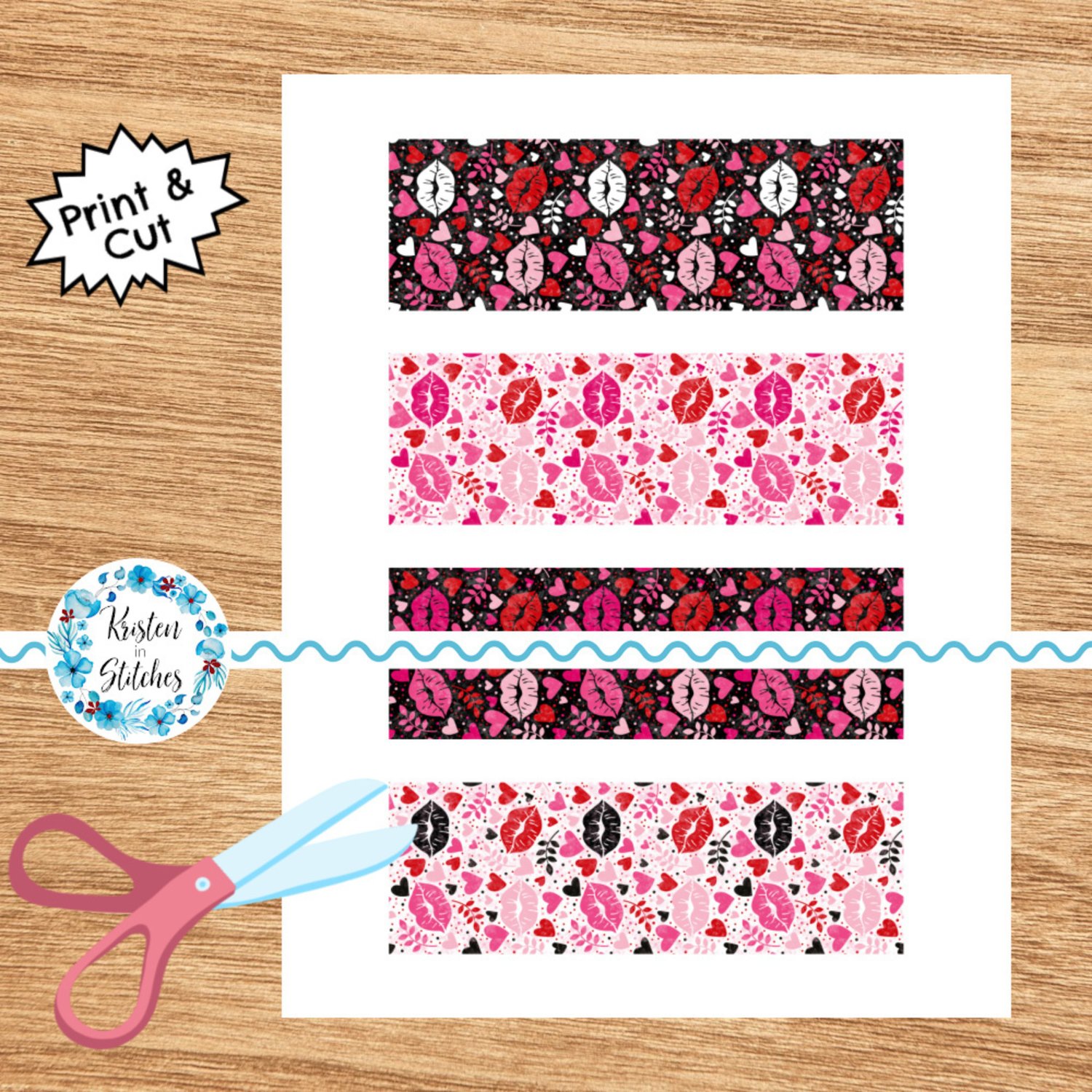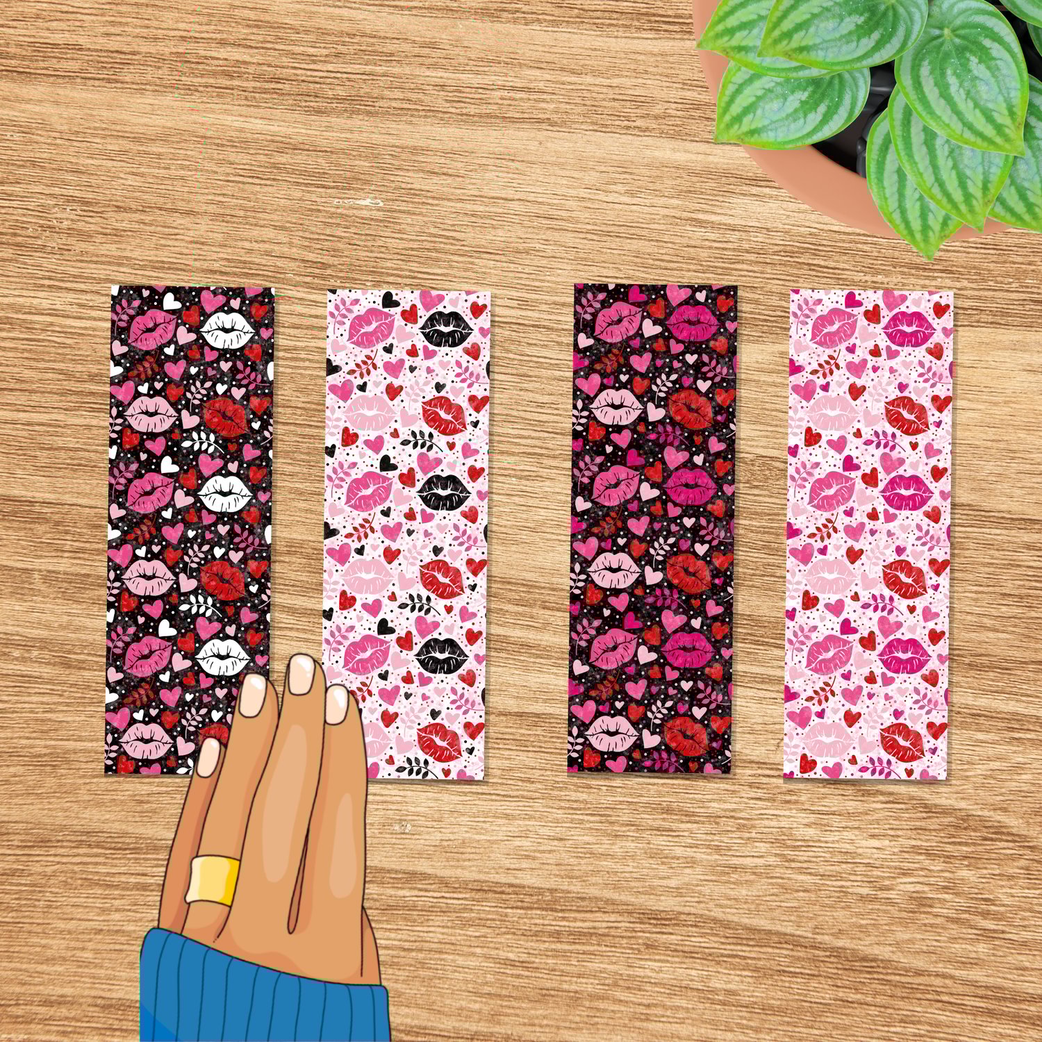 Valentine's Day Hearts and Kisses Printable Bookmarks Sheet 2x6 Print and Cut PDF PNG Craft Prizes Activities