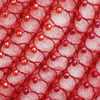 Working mesh lace (2-row stitch pattern) from written instructions, inserting beads with crochet hook.