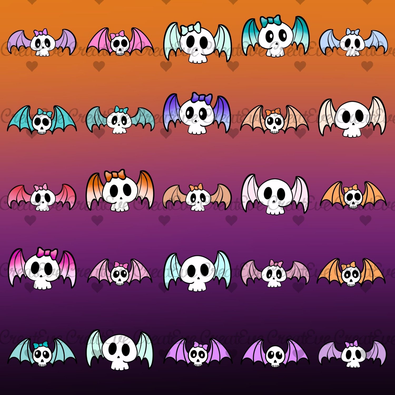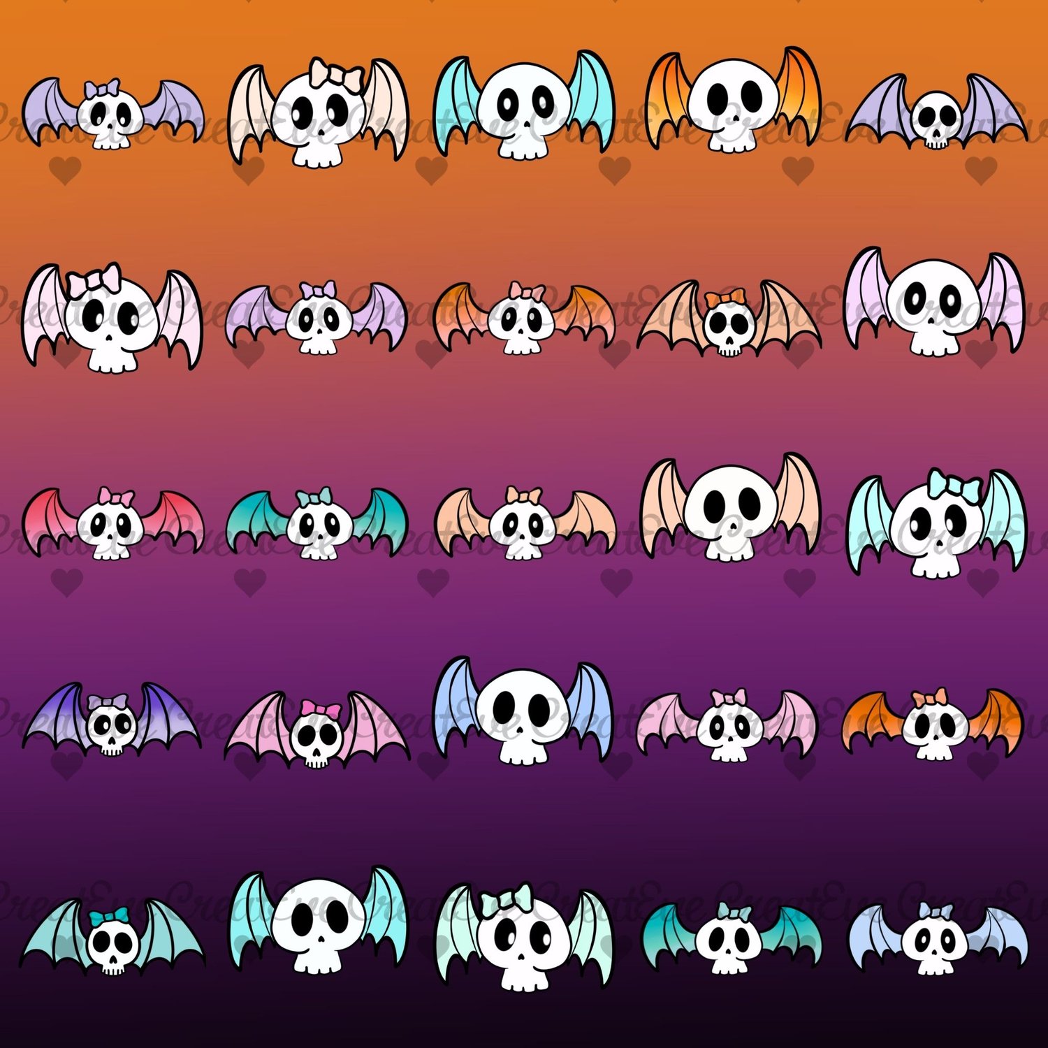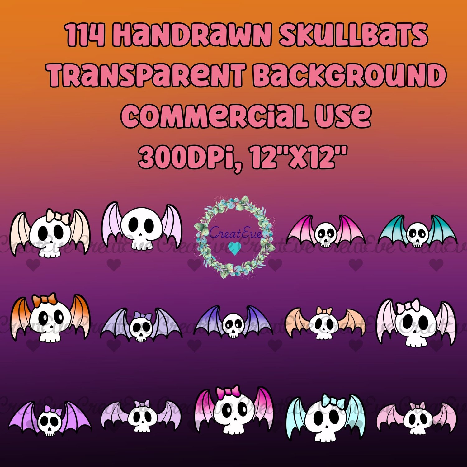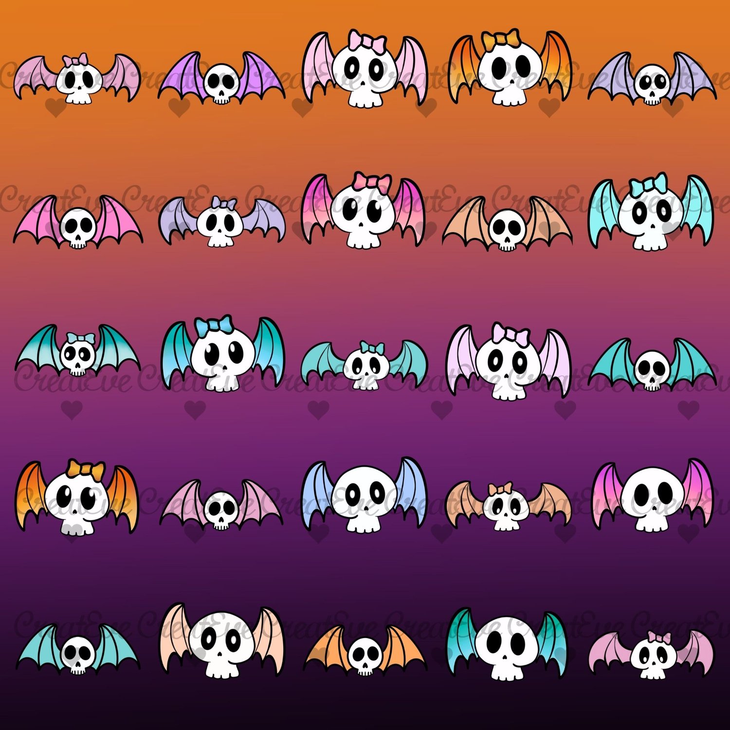 Hand Drawn Pastel Halloween Skull Bats 114 Image Clipart Bundle