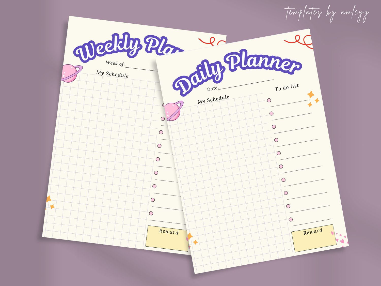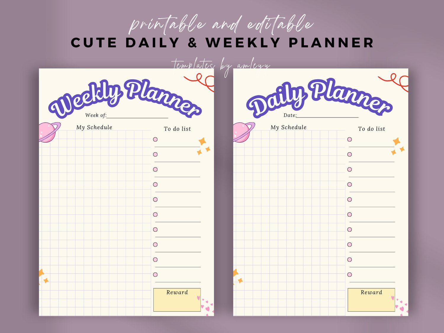 ๐ Stay productive in the cutest way possible with this Cute Simple Daily & Weekly Planner Template, designed in Canva for easy customization. This planner combines simplicity with adorable style, making planning your day and week fun and visually appealing.ย