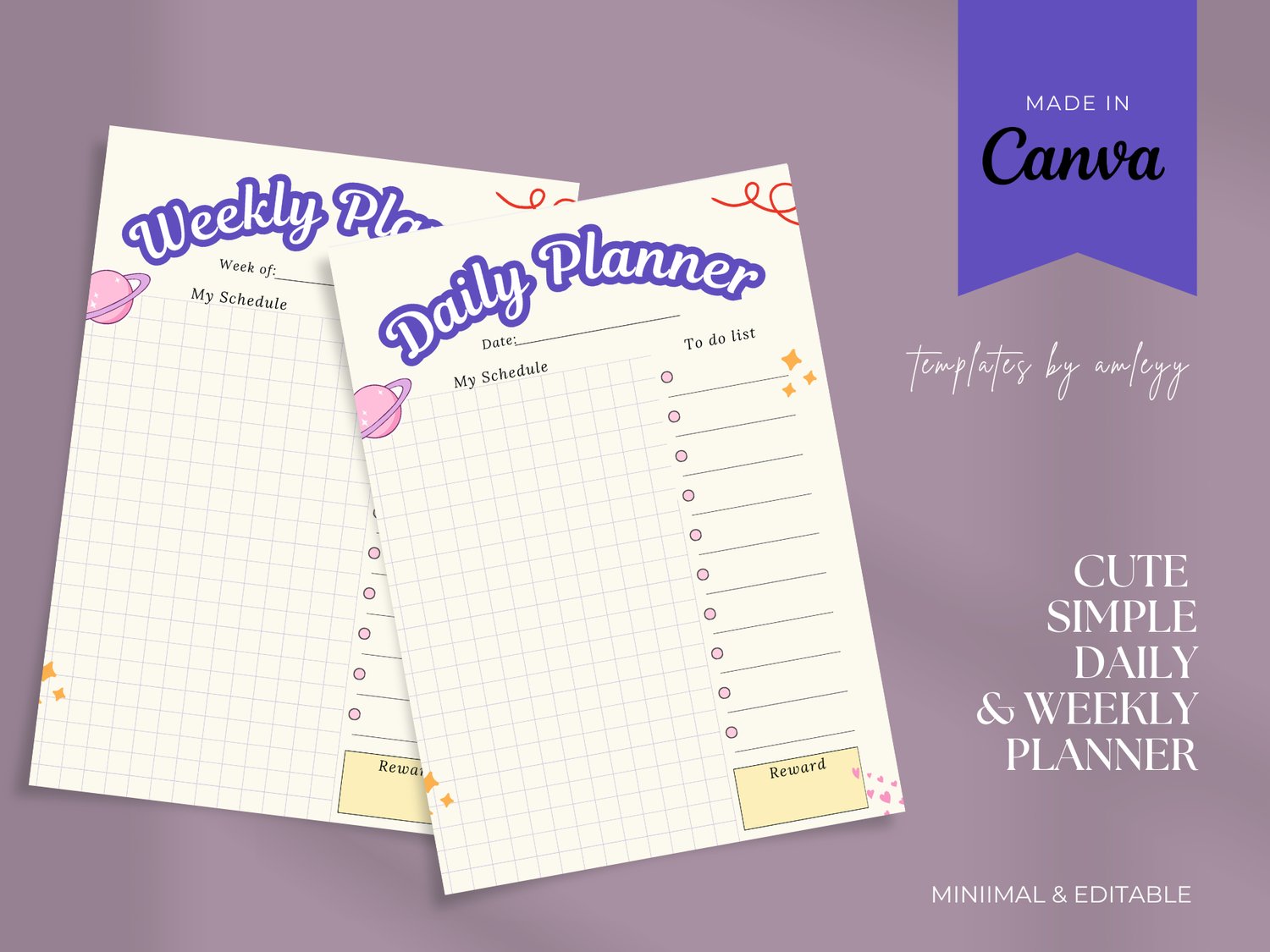 ๐ Cute Simple Daily & Weekly Planner Template โ Editable Canva Printable Planner