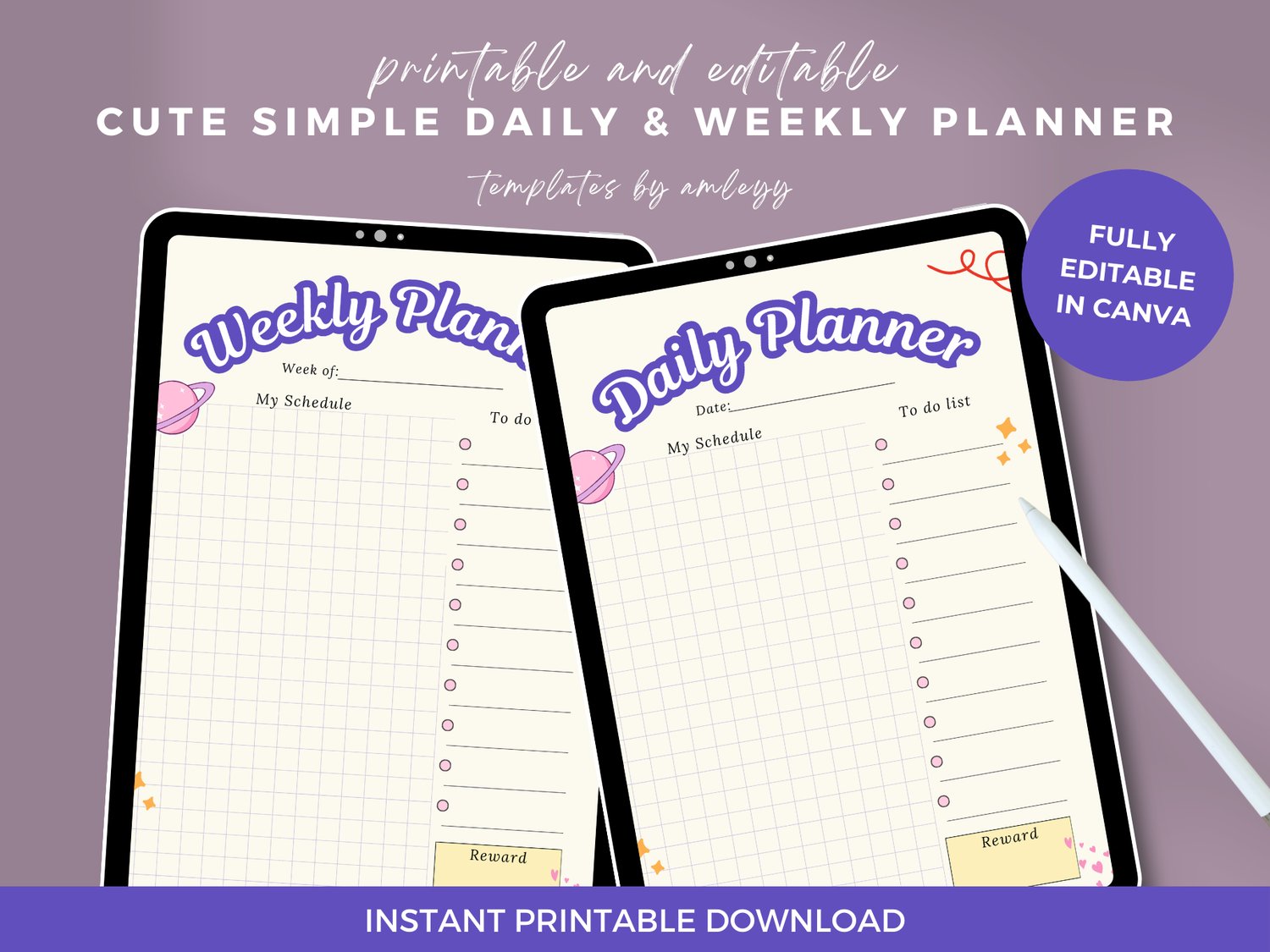Cute Simple Daily & Weekly Planner Template โ Editable Canva Printable Planner