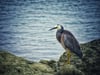 A white faced heron standing on a rock on the coast of Kaikoura in the South Island of New Zealand.