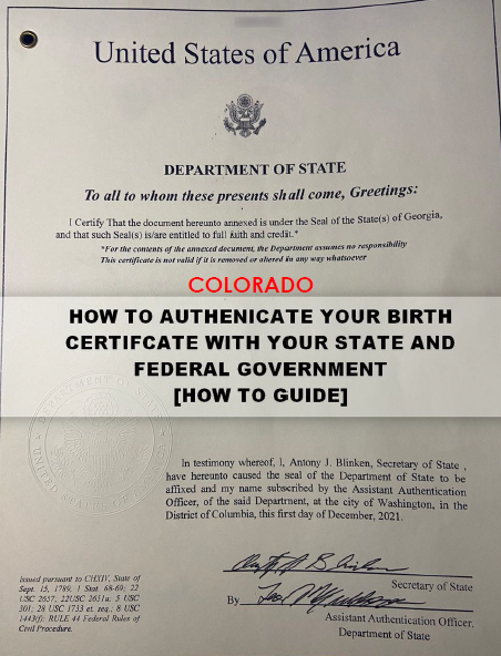 Colorado - HOW TO AUTHENICATE YOUR BIRTHCERTIFCATE WITH THE STATE AND FEDERAL GOVERNMENT