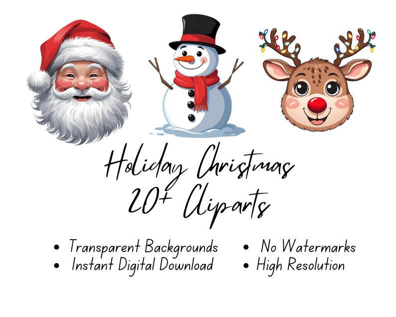 Holiday Christmas 20+ Cliparts | Instant Download | High Resolution | Digital Format