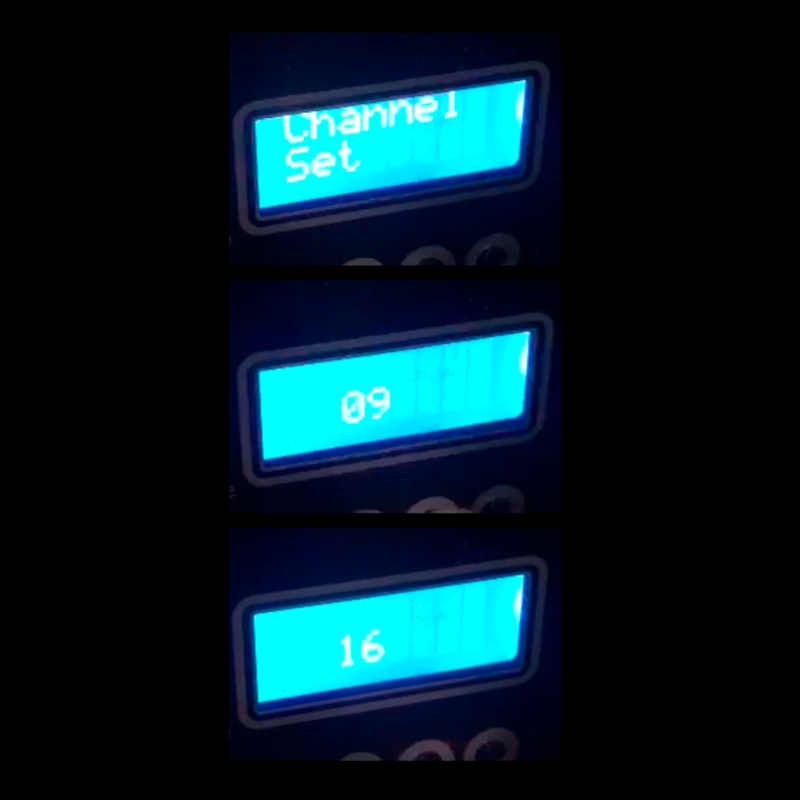 * Verifique, desde el display del equipo, que el menú "Channel Set" muestre los modos: "09" y "16" (tercer foto).