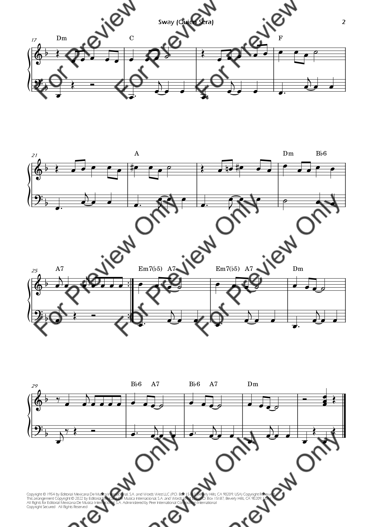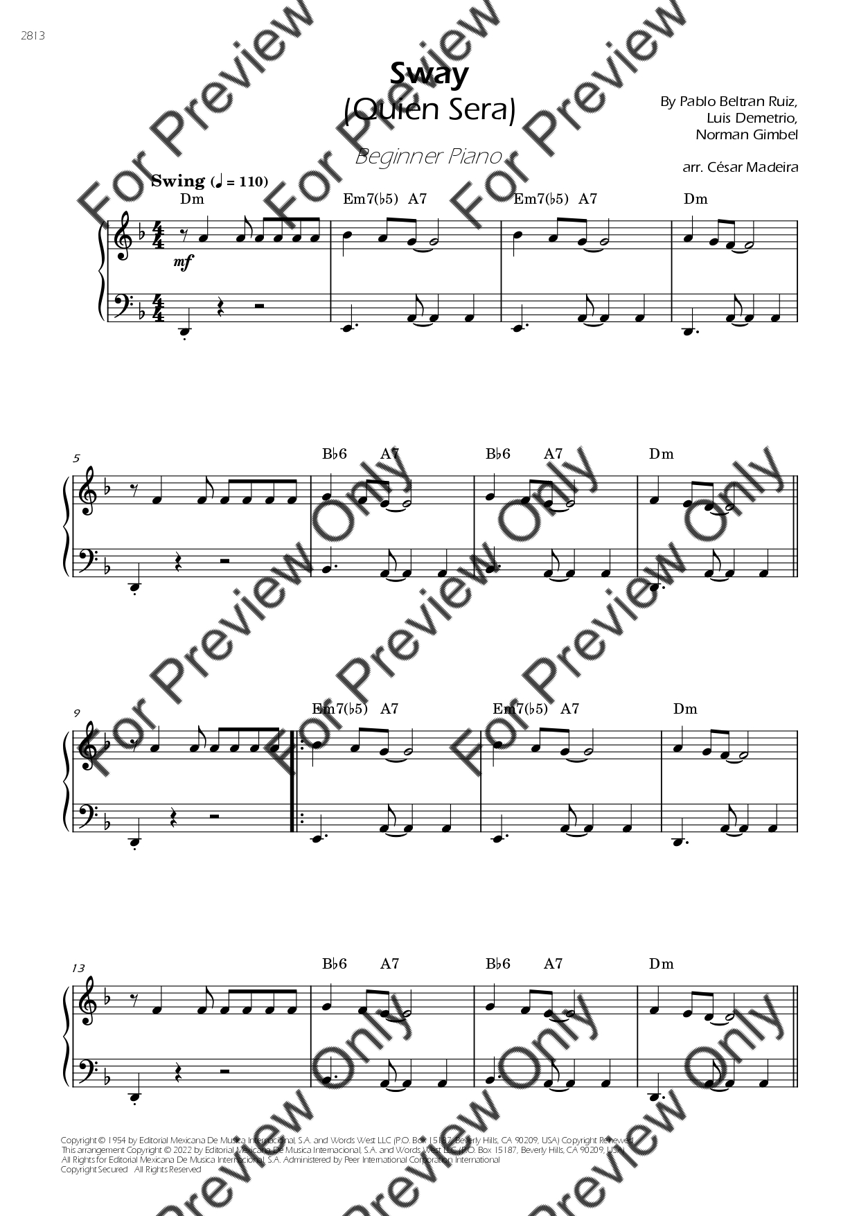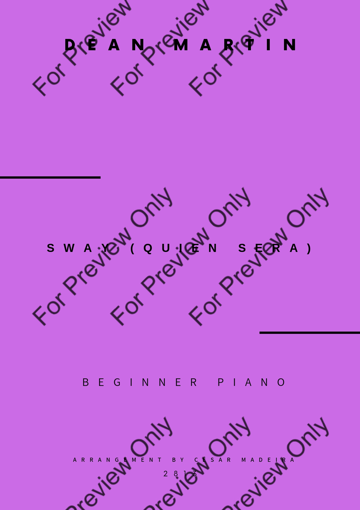 Sway (Quien Sera) by Dean Martin. Arrangement for Beginner/Easy Piano. With Full Score. Have fun!