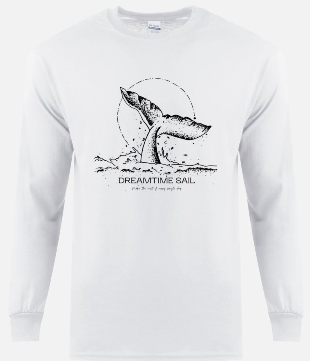 This stylish long sleeve tee is designed to take you seamlessly from the beach to the bar. Featuring a range of designs—from our classic Dreamtime Sail logo to more playful, eye-catching graphics—each tee reflects our love of the ocean and the lifestyle it inspires. We love Whales and seeing these giants of the ocean slapping their tails takes your breath away. This graphics tee is a piece of art that reflects how we love the ocean.