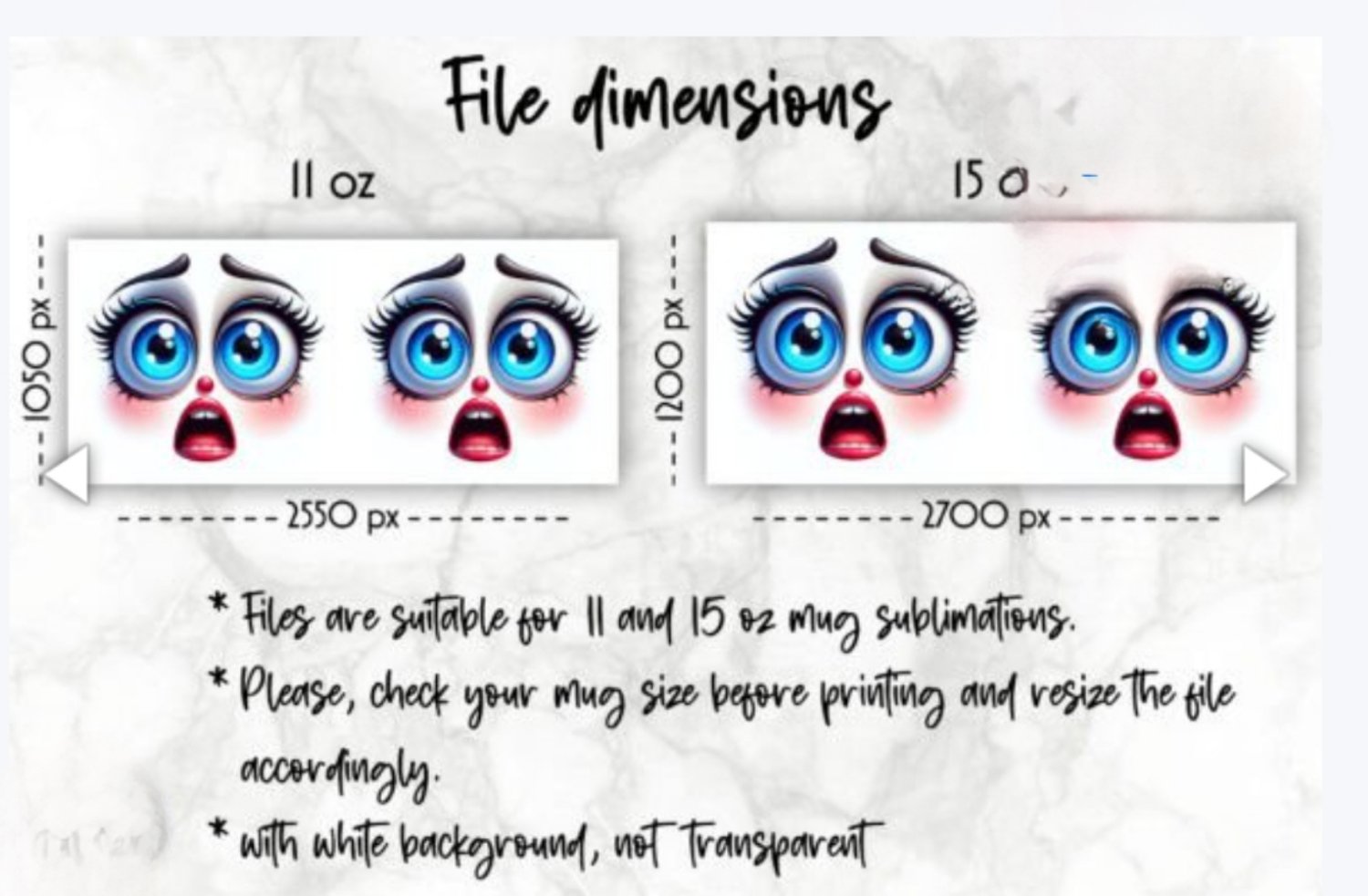 The sizes are based on standard sublimation coffee mug dimensions but they may need to be cropped or resized slightly to fit your template.