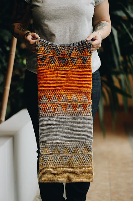 Sample was knit in the following yarns and colorways: Tyrrell DK by Martin’s Lab in Tabby (CC1), Autumn in Poland (CC2), Wheat (CC4), and Lavender (CC5); Comfy DK by Martin’s Lab in Silver Lining (CC3).
