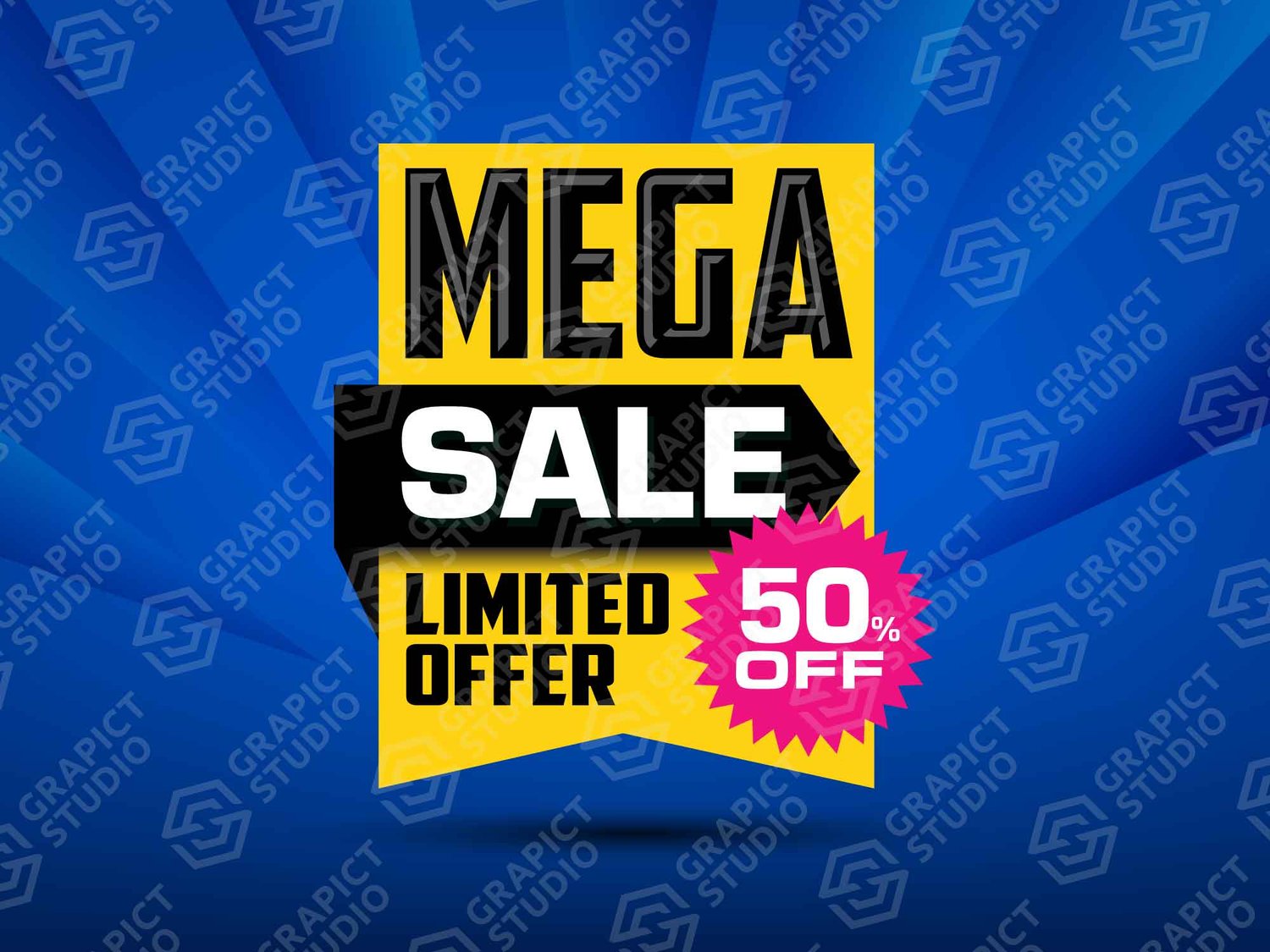Promotion banner design, discount deal offer, marketing sales illustration with text Mega Sale. Design element related to advertising banner, promotional ads post for social media, and shop banner