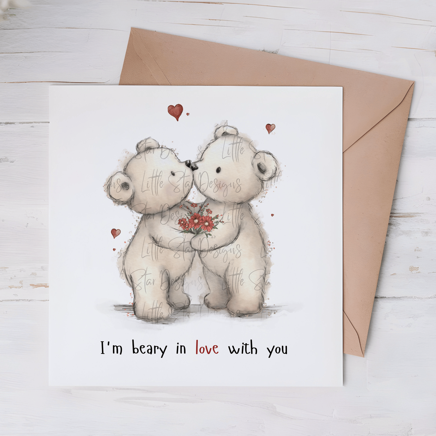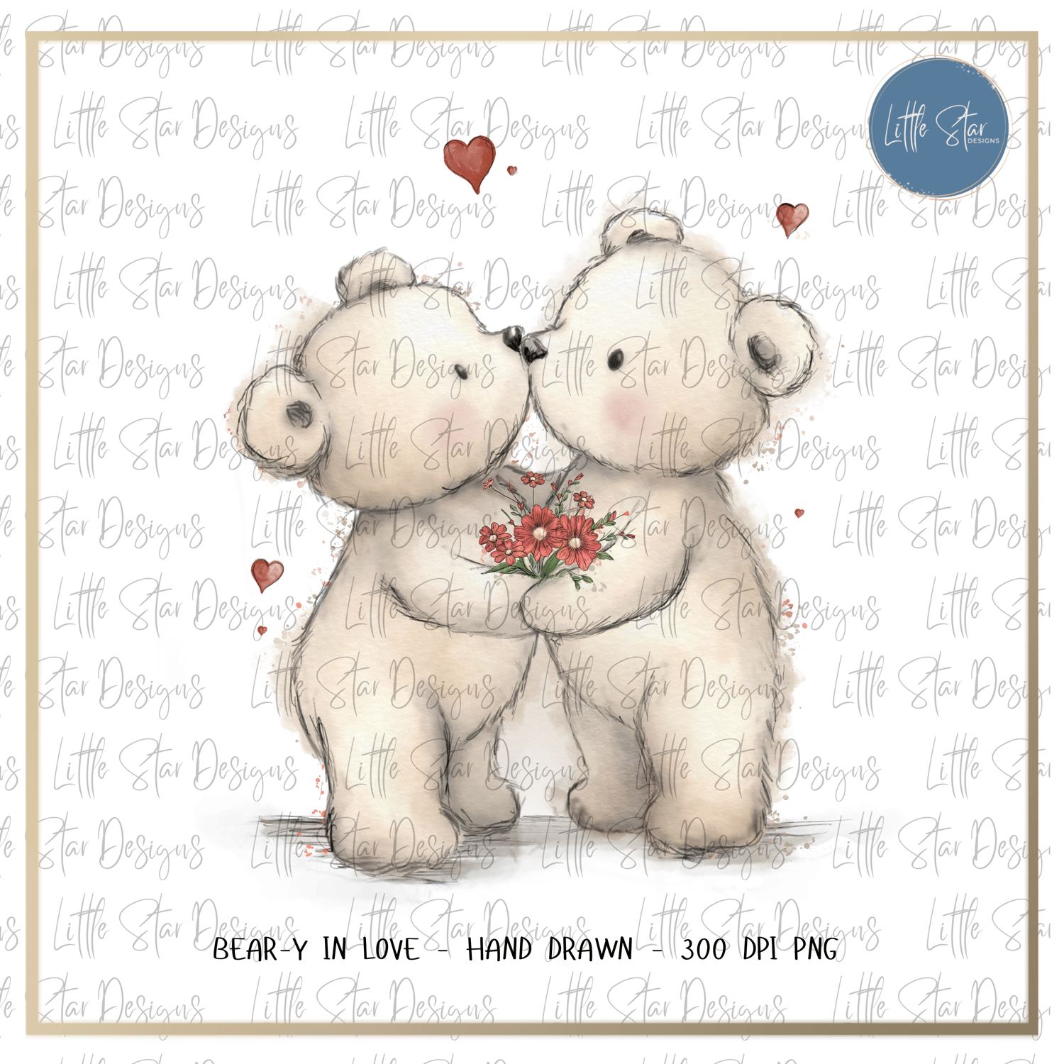 This "Bear-y in Love" artwork features a two sweet little bears holding flowers kissing in neutral tones with red details, and it has been digitally hand-drawn by me. Each downloadable file is available in high-resolution 300 DPI PNG format. Please note that any mock-ups shown in the images above are for representation purposes only and are not included in the download. These illustrations come with a commercial license, allowing for sublimation or print, and cover unlimited physical products printed by the purchaser. By purchasing this artwork, you agree to the terms of this license. Additionally, due to their watercolor nature, these illustrations may not be suitable for DTF/UVDTF printing.