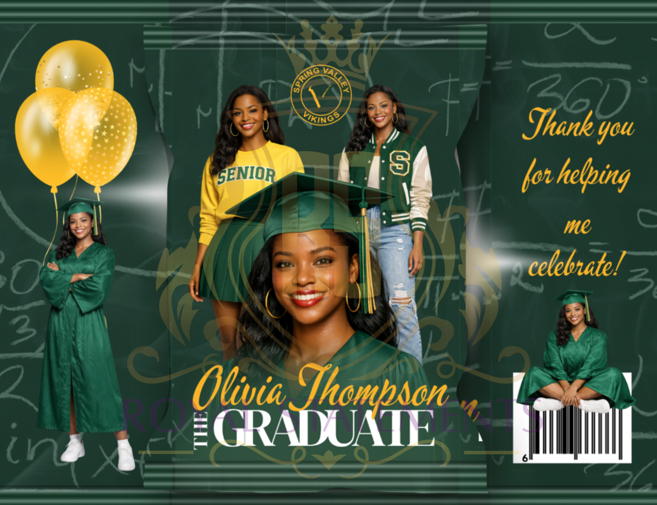 Graduation Chip Bag Template – Green & Gold Senior Edition